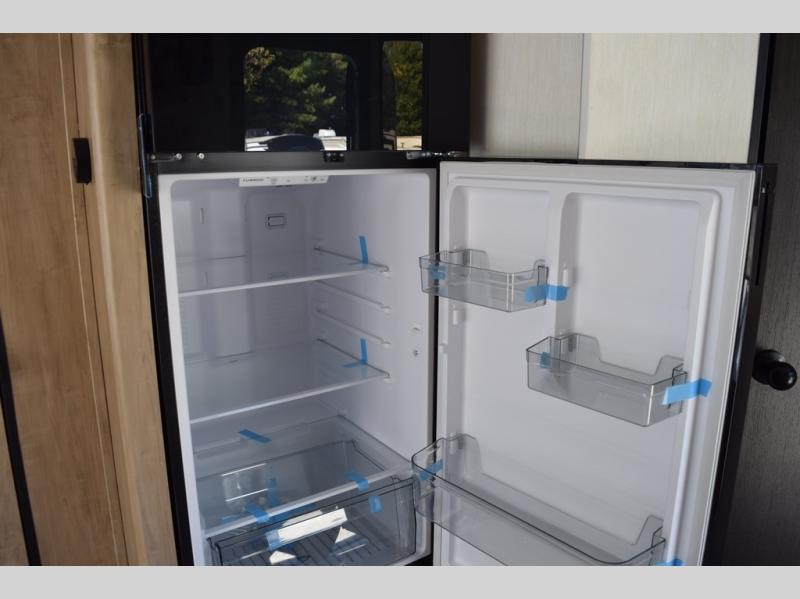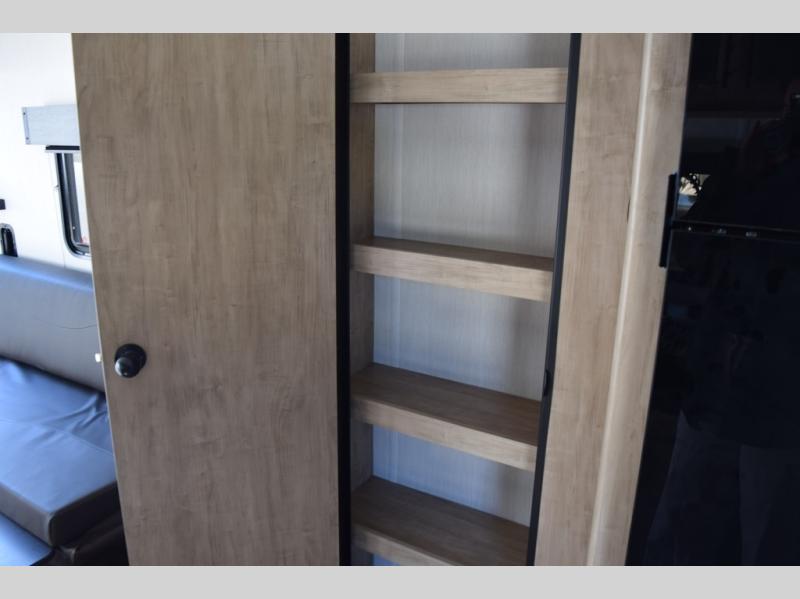 You will love this Cherokee Grey Wolf toy hauler with a rear ramp door for loading and unloading your toys and gear. If you position the fold-down sofas up against the wall, you will have even more room for extra gear when you are moving down the road. Set up camp and easily create a great dining area with the removable table between each fold-down sofa. You can also create your best meals in a breeze with the airy fryer or cooktop. A large pantry allows you to pack all of the snacks and canned goods you need for your adventure. You will appreciate the master suite up front for a great night's rest on the RV king bed along with easy access into the dual-entry bath.