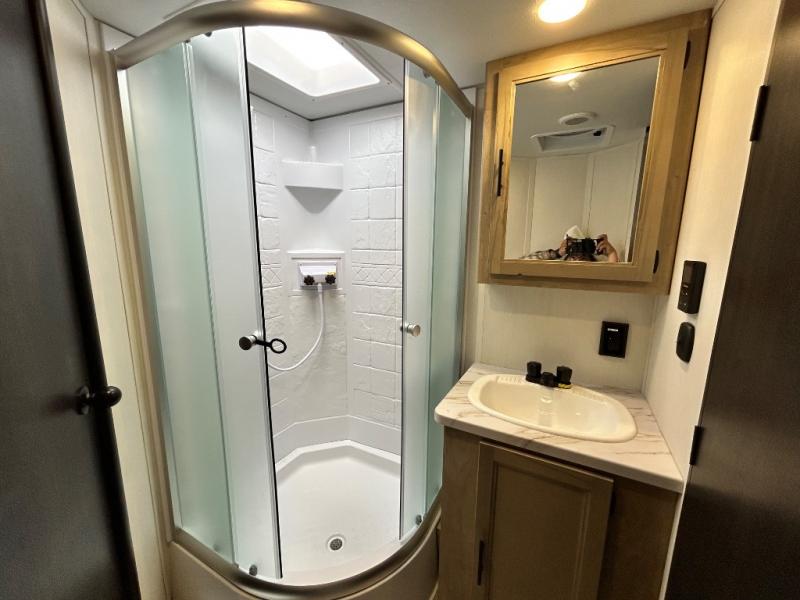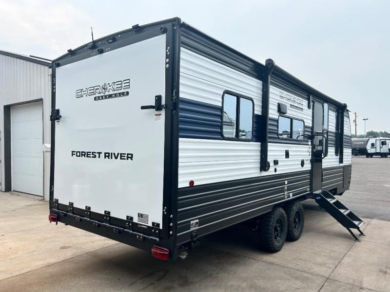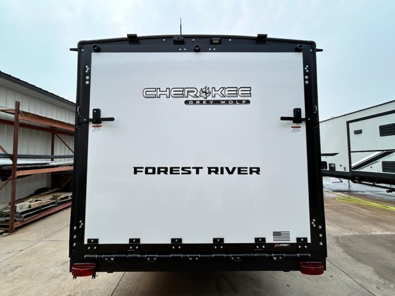 Whether it's a journey that will take you to new locations or a tried-and-true getaway to that favorite and memorable destination, the Forest River Cherokee Grey Wolf travel trailers and toy haulers are going to make the trip worth it every single time! You can travel in confidence with the premium wheel package, seamless roofing membrane with heat reflectivity, Power Gear frame technology with space-saver rail design, and Cherokee back-up camera system. The Cherokee Grey Wolf's interior is highly attractive with its stainless steel kitchen suite package, and premium bedding ensemble and comforter. You will also find a black waste tank flush-out kit, an outside shower with hot and cold water, an armored underbelly tank enclosure, and an RV grill quick connect.