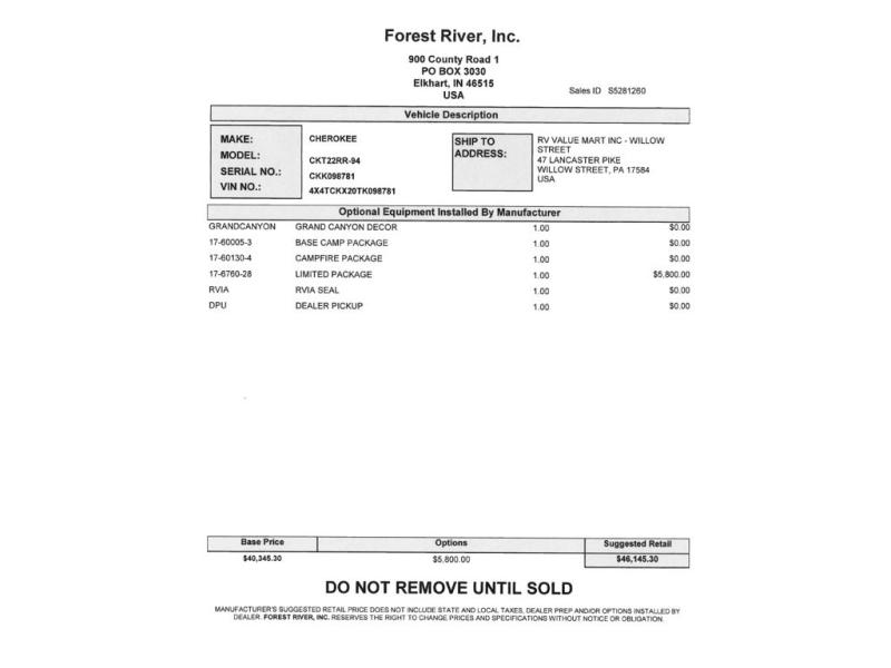 Forest River Cherokee Grey Wolf toy hauler 22RR highlights: