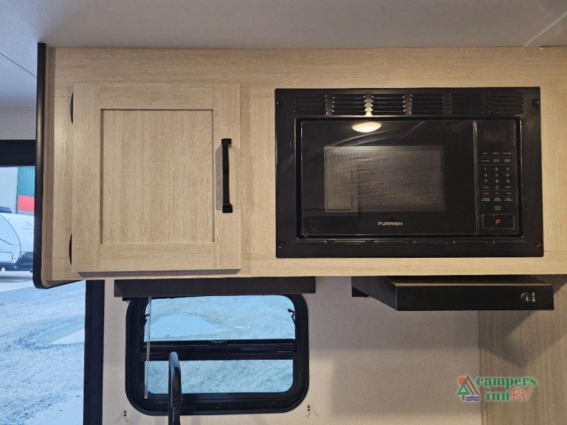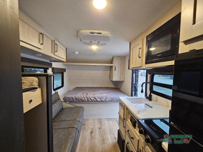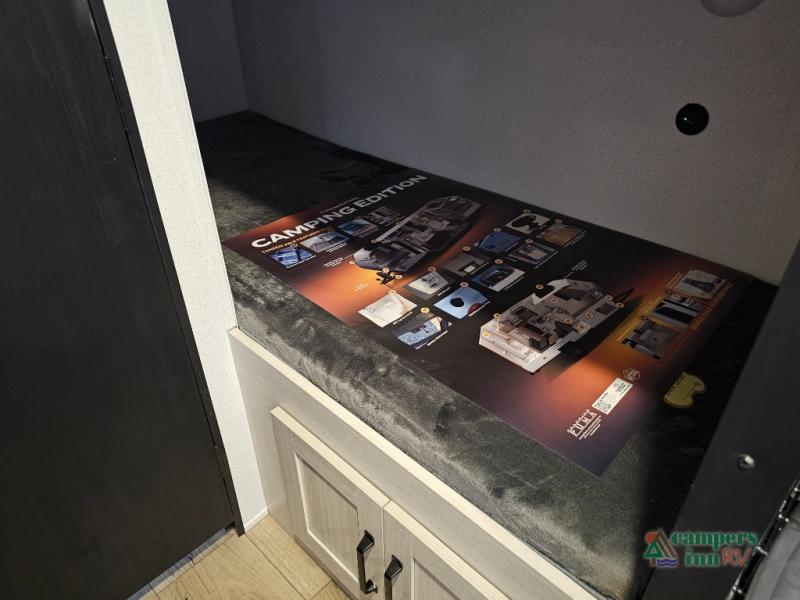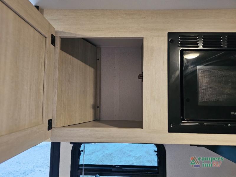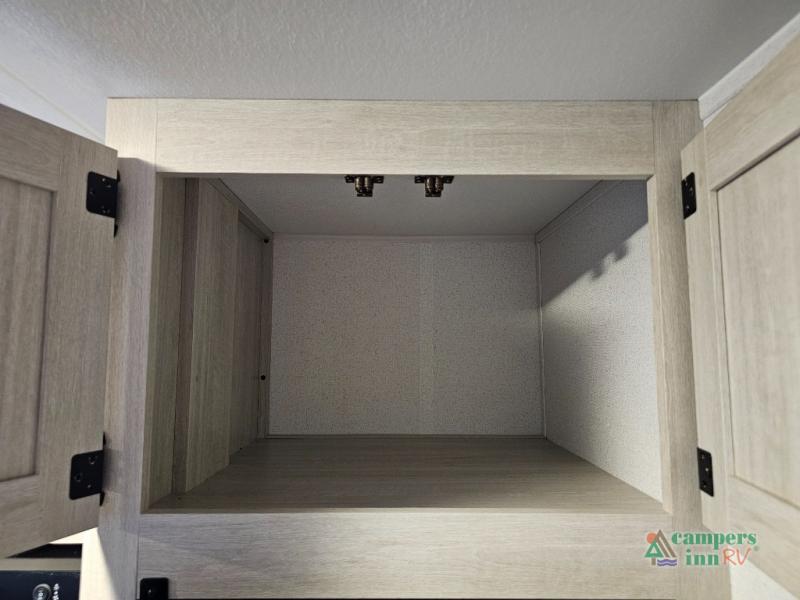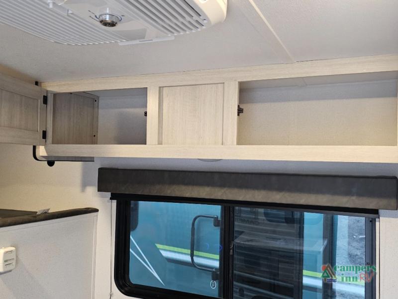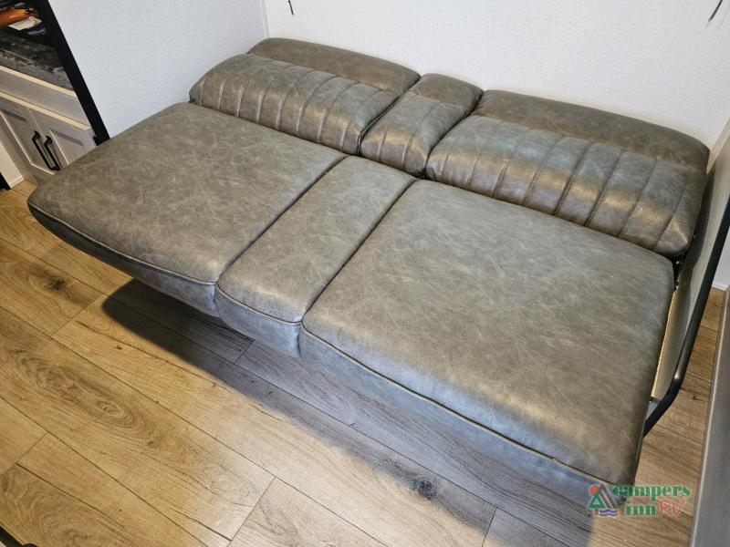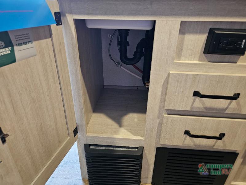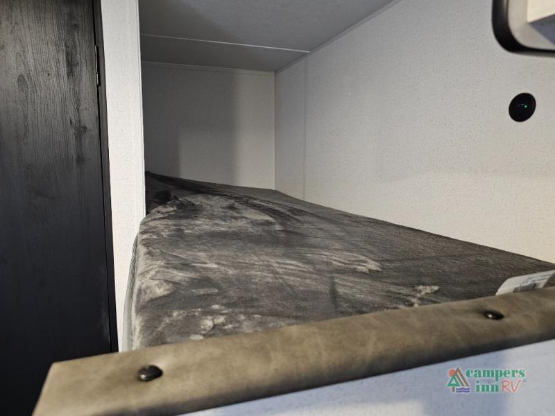 You will love the space provided in this dual entry Cherokee Grey Wolf travel trailer that has double-size bunks! The rear entry door leads right into the full bath allowing easy access from outside when you need to use the bathroom while you're enjoying the great outdoors. The large U-shaped dinette slide will not only seat everyone comfortably for a meal or a game, but since it also slides out, it opens up the interior even more to give you plenty of space for foot traffic. For all of your outdoor gear, you will find the outside storage compartments handy for stowing away your things when not in use. While the kids enjoy their bunk beds, you will enjoy a good night's rest in your RV king bed with wardrobes on either side up in the front private bedroom!