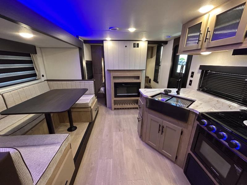 Solar Panel / MEGA DINETTE SLIDE / TWO ENTRY DOORS / TWO FULL SIZE BUNKS/FIRE PLACE/ POWER STABILIZER JACKS