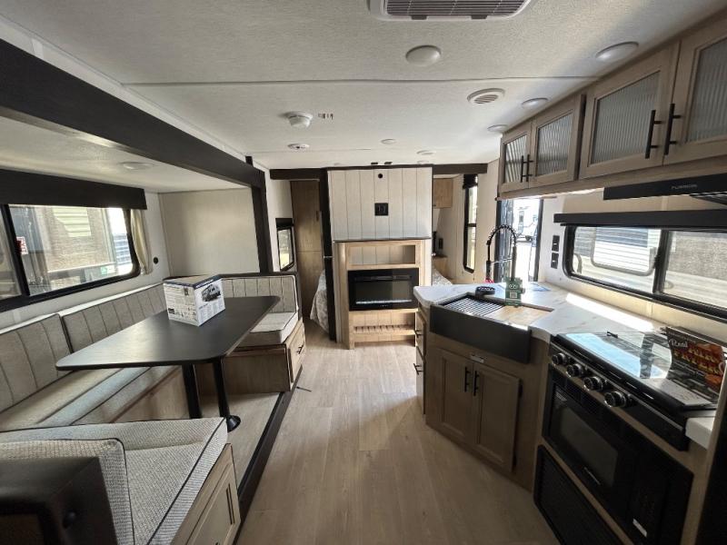 You will love the space provided in this dual entry Cherokee Grey Wolf travel trailer that has double-size bunks! The rear entry door leads right into the full bath allowing easy access from outside when you need to use the bathroom while you're enjoying the great outdoors. The large U-shaped dinette slide will not only seat everyone comfortably for a meal or a game, but since it also slides out, it opens up the interior even more to give you plenty of space for foot traffic. For all of your outdoor gear, you will find the outside storage compartments handy for stowing away your things when not in use. While the kids enjoy their bunk beds, you will enjoy a good night's rest in your RV king bed with wardrobes on either side up in the front private bedroom!