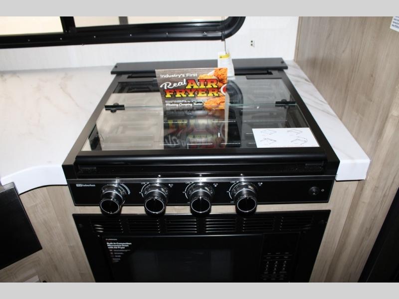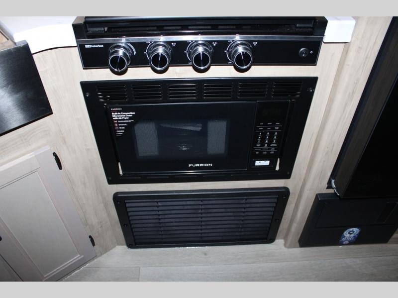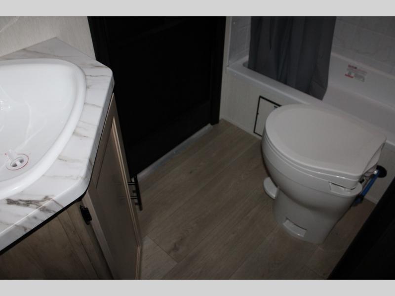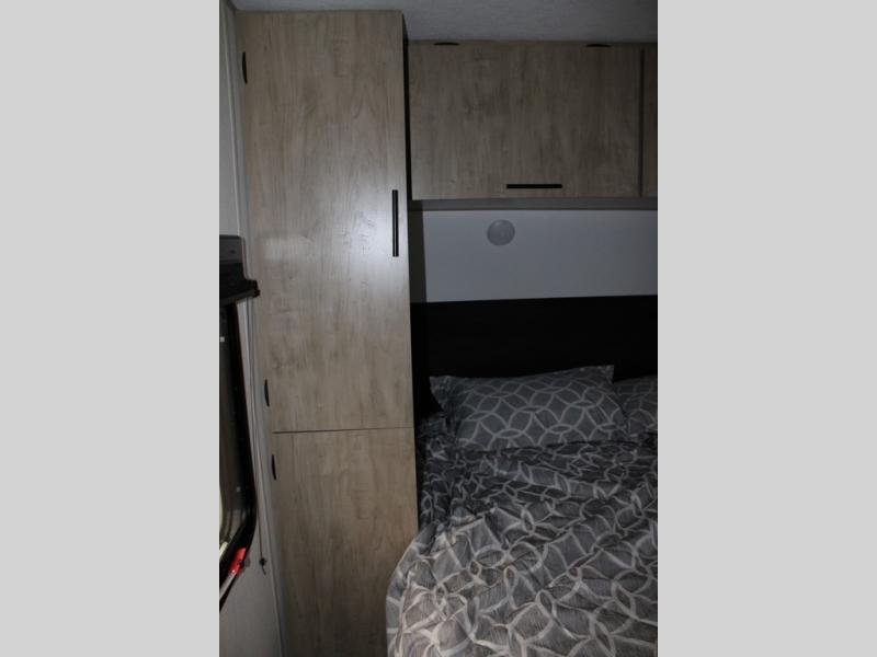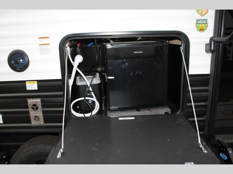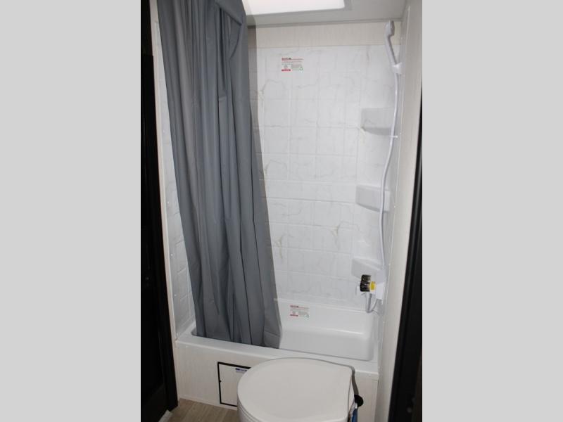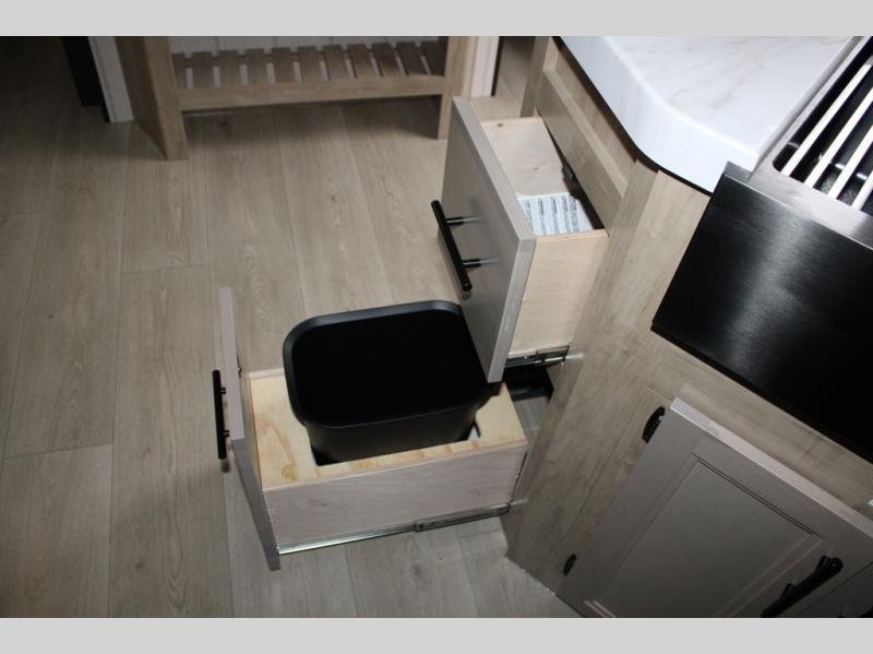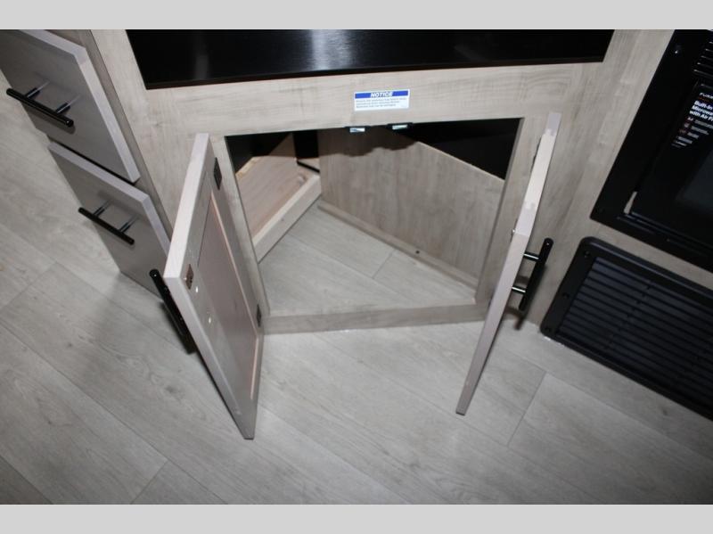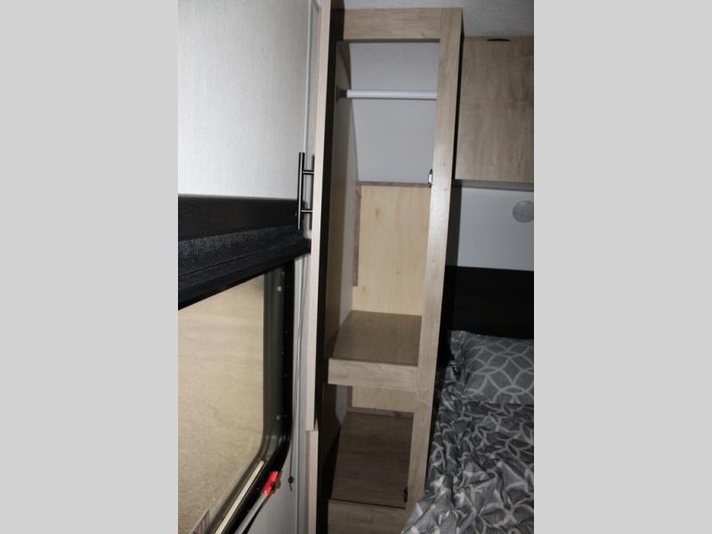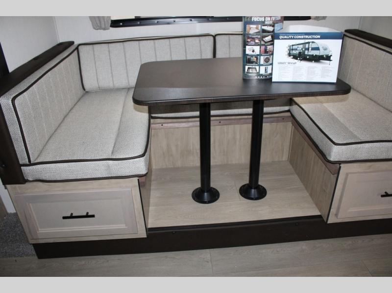 You will love the space provided in this dual entry Cherokee Grey Wolf travel trailer that has double-size bunks! The rear entry door leads right into the full bath allowing easy access from outside when you need to use the bathroom while you're enjoying the great outdoors. The large U-shaped dinette slide will not only seat everyone comfortably for a meal or a game, but since it also slides out, it opens up the interior even more to give you plenty of space for foot traffic. For all of your outdoor gear, you will find the outside storage compartments handy for stowing away your things when not in use. While the kids enjoy their bunk beds, you will enjoy a good night's rest in your RV king bed with wardrobes on either side up in the front private bedroom!