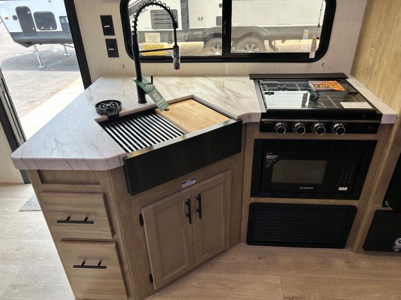Whether it's a journey that will take you to new locations or a tried-and-true getaway to that favorite and memorable destination, the Forest River Cherokee Grey Wolf travel trailers and toy haulers are going to make the trip worth it every single time! You can travel in confidence with the premium wheel package, seamless roofing membrane with heat reflectivity, Power Gear frame technology with space-saver rail design, and Cherokee back-up camera system. The Cherokee Grey Wolf's interior is highly attractive with its stainless steel kitchen suite package and premium bedding ensemble and comforter. You will also find a black waste tank flush-out kit, an outside shower with hot and cold water, an armored underbelly tank enclosure, and an RV grill quick connect.