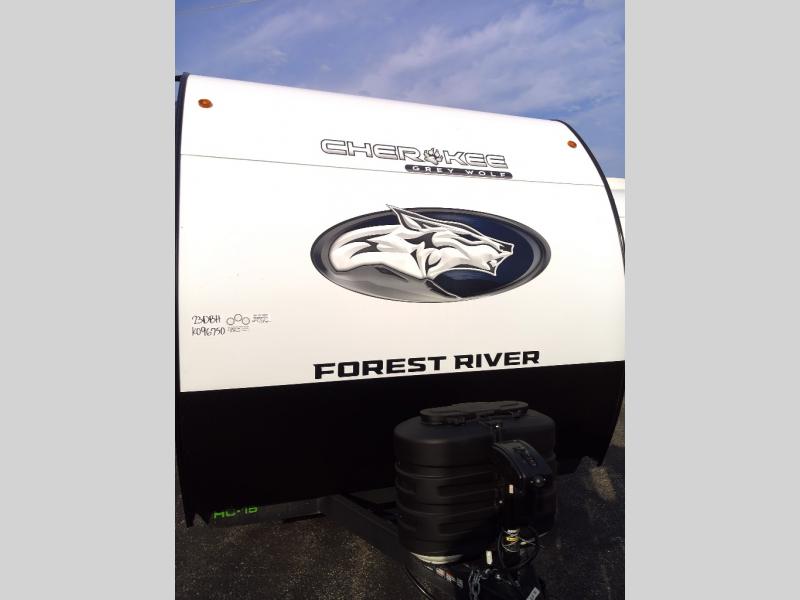 Whether it's a journey that will take you to new locations or a tried-and-true getaway to that favorite and memorable destination, the Forest River Cherokee Grey Wolf travel trailers and toy haulers are going to make the trip worth it every single time! You can travel in confidence with the premium wheel package, seamless roofing membrane with heat reflectivity, Power Gear frame technology with space-saver rail design, and Cherokee back-up camera system. The Cherokee Grey Wolf's interior is highly attractive with its stainless steel kitchen suite package and premium bedding ensemble and comforter. You will also find a black waste tank flush-out kit, an outside shower with hot and cold water, an armored underbelly tank enclosure, and an RV grill quick connect.