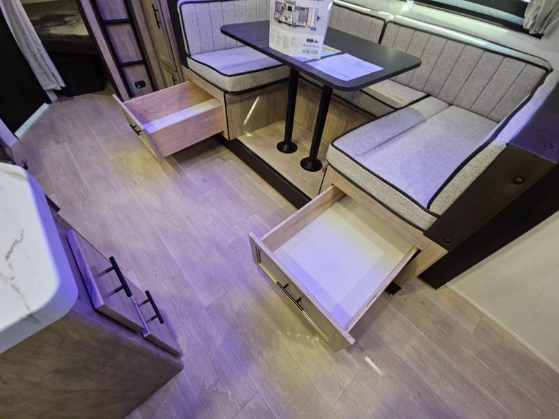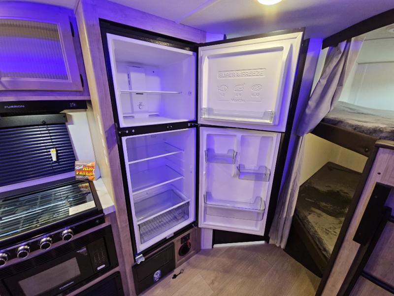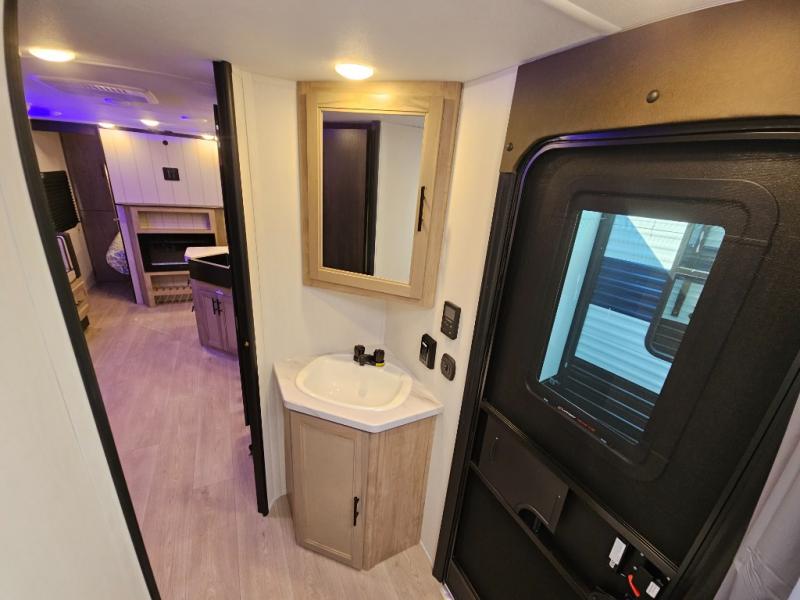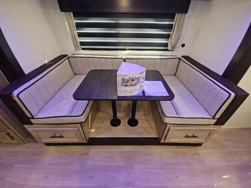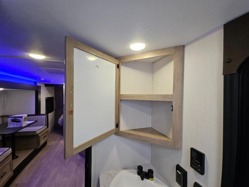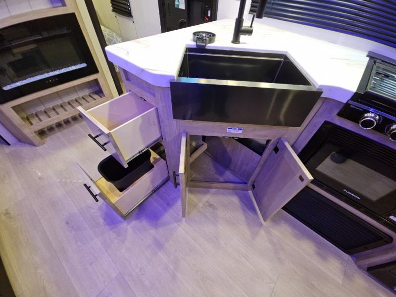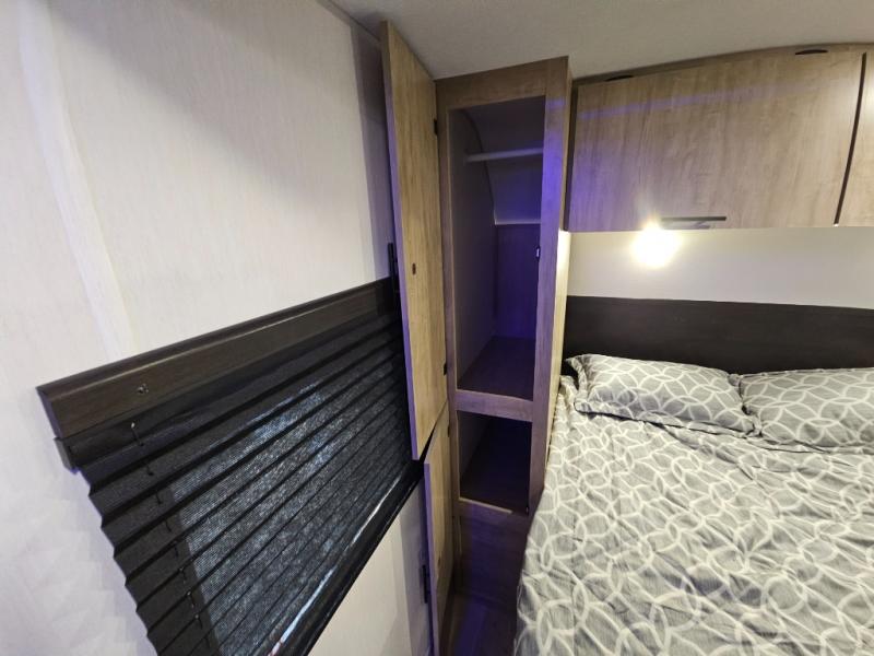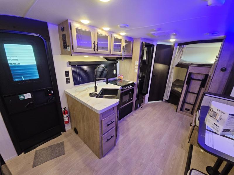 You will love the space provided in this dual entry Cherokee Grey Wolf travel trailer that has double-size bunks! The rear entry door leads right into the full bath allowing easy access from outside when you need to use the bathroom while you're enjoying the great outdoors. The large U-shaped dinette slide will not only seat everyone comfortably for a meal or a game, but since it also slides out, it opens up the interior even more to give you plenty of space for foot traffic. For all of your outdoor gear, you will find the outside storage compartments handy for stowing away your things when not in use. While the kids enjoy their bunk beds, you will enjoy a good night's rest in your RV king bed with wardrobes on either side up in the front private bedroom!
