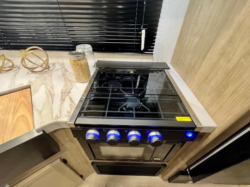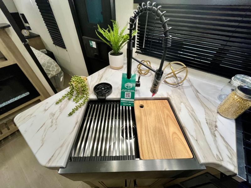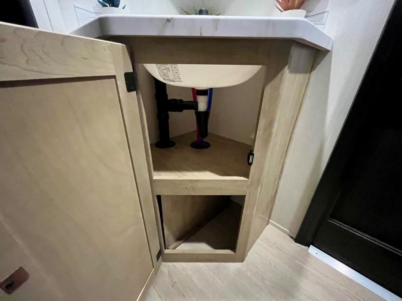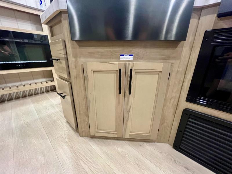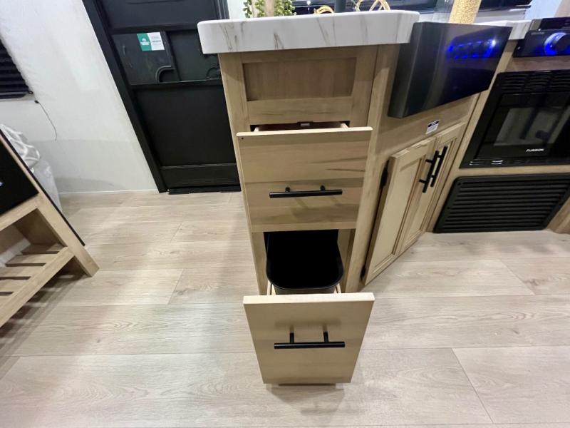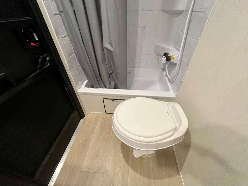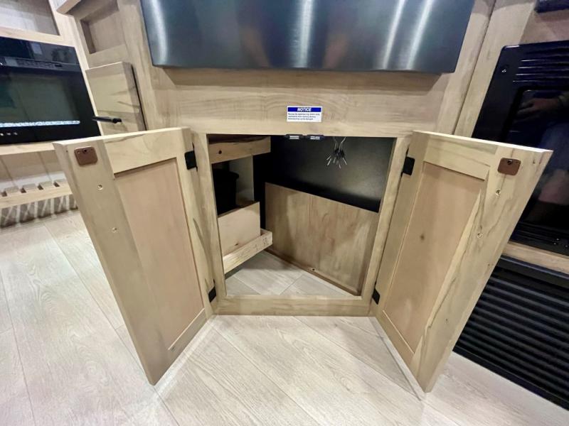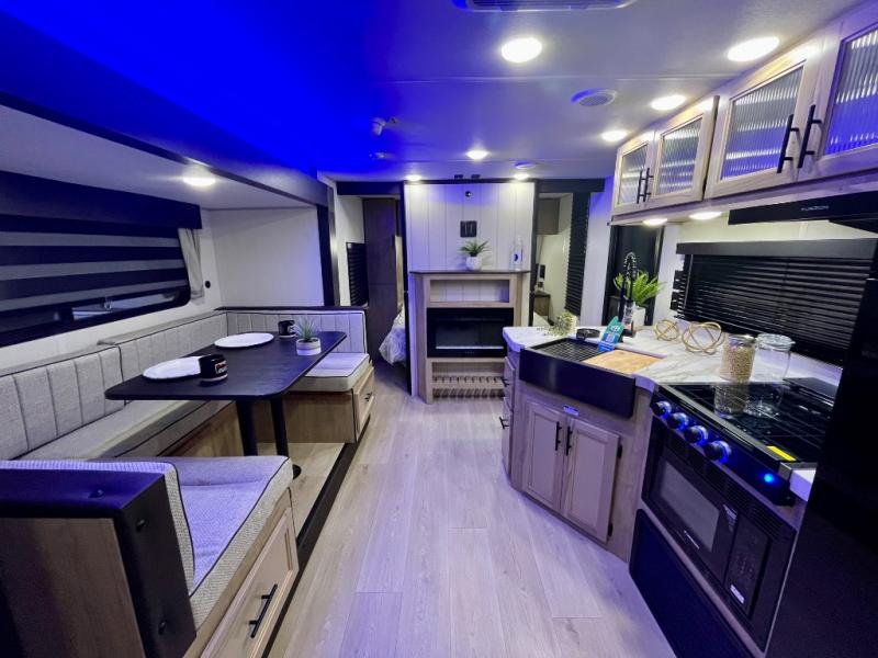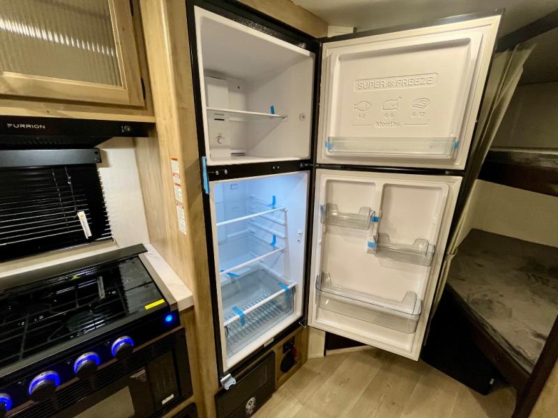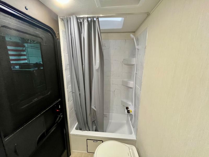 You will love the space provided in this dual entry Cherokee Grey Wolf travel trailer that has double-size bunks! The rear entry door leads right into the full bath allowing easy access from outside when you need to use the bathroom while you're enjoying the great outdoors. The large U-shaped dinette slide will not only seat everyone comfortably for a meal or a game, but since it also slides out, it opens up the interior even more to give you plenty of space for foot traffic. For all of your outdoor gear, you will find the outside storage compartments handy for stowing away your things when not in use. While the kids enjoy their bunk beds, you will enjoy a good night's rest in your RV king bed with wardrobes on either side up in the front private bedroom!