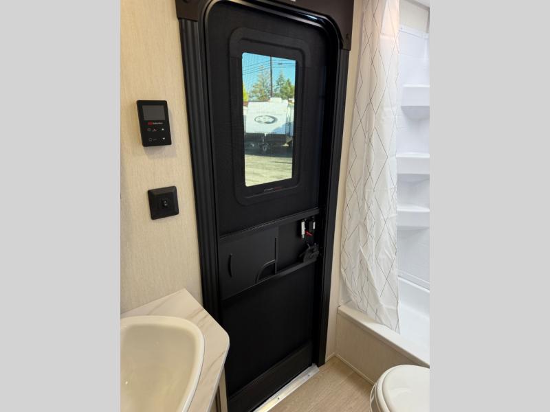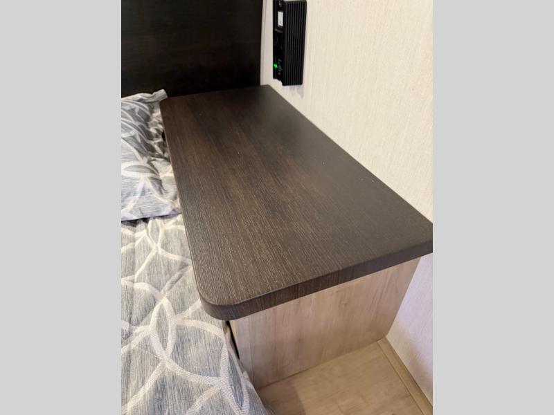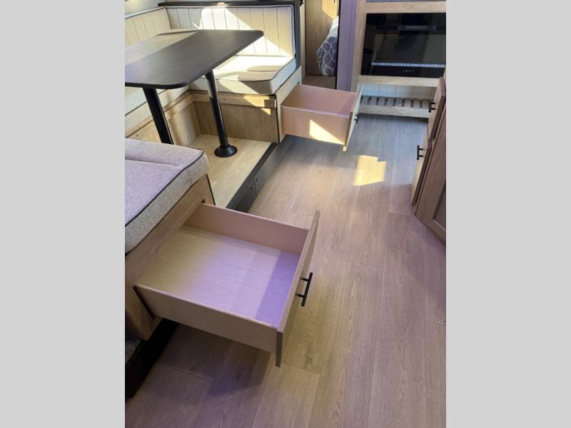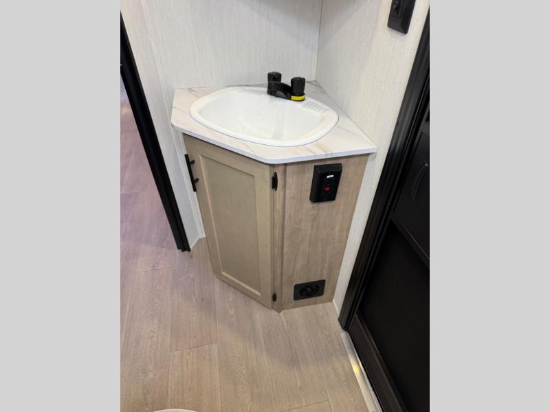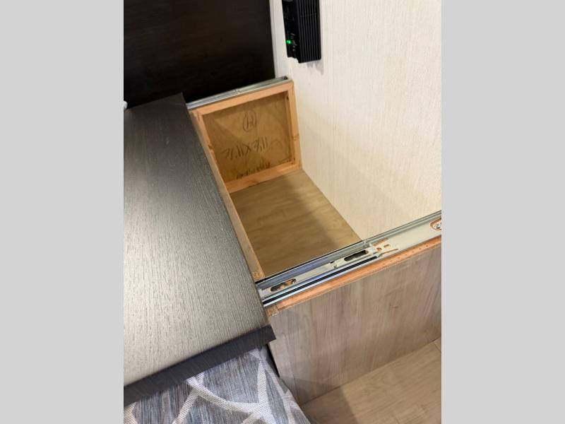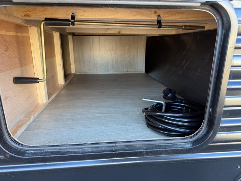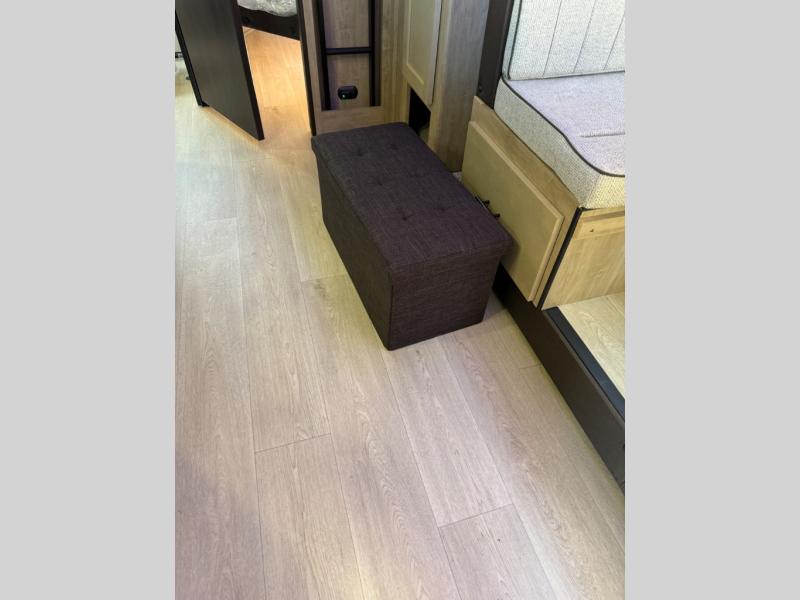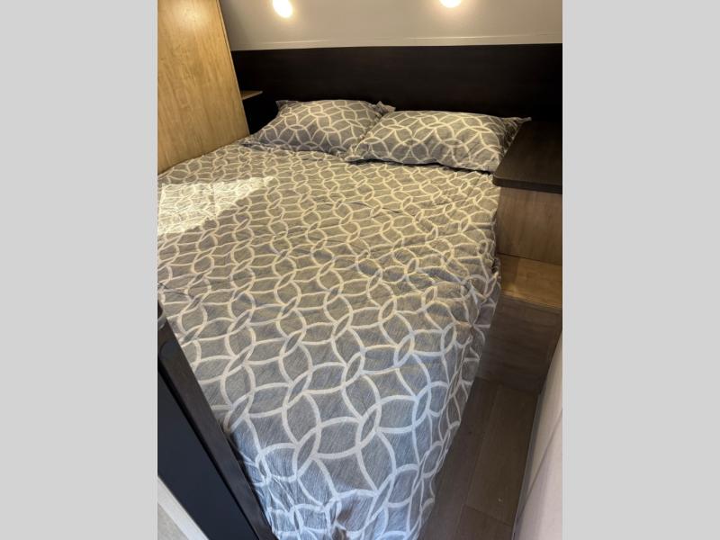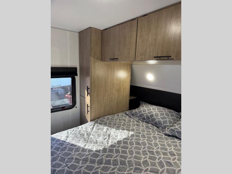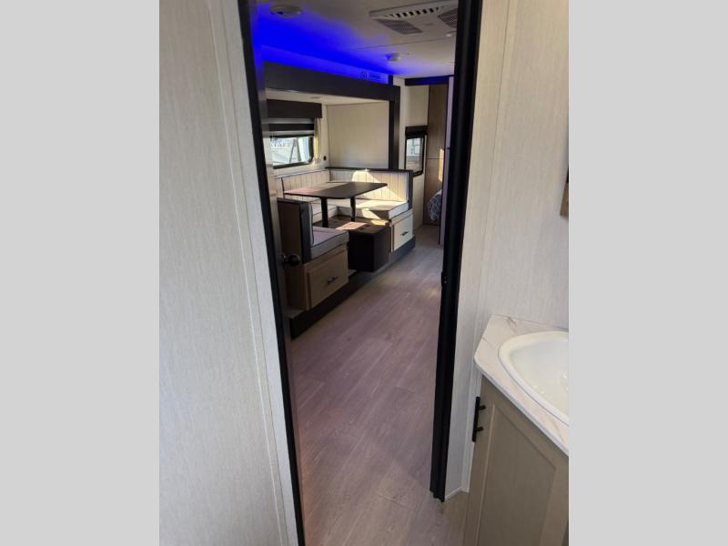 You will love the space provided in this dual entry Cherokee Grey Wolf travel trailer that has double-size bunks! The rear entry door leads right into the full bath allowing easy access from outside when you need to use the bathroom while you're enjoying the great outdoors. The large U-shaped dinette slide will not only seat everyone comfortably for a meal or a game, but since it also slides out, it opens up the interior even more to give you plenty of space for foot traffic. For all of your outdoor gear, you will find the outside storage compartments handy for stowing away your things when not in use. While the kids enjoy their bunk beds, you will enjoy a good night's rest in your RV king bed with wardrobes on either side up in the front private bedroom!