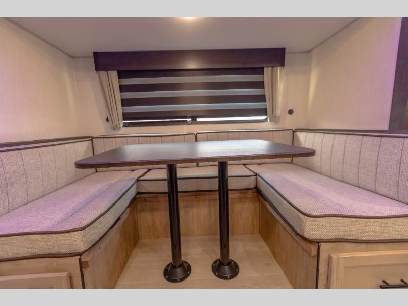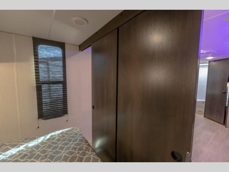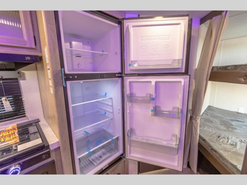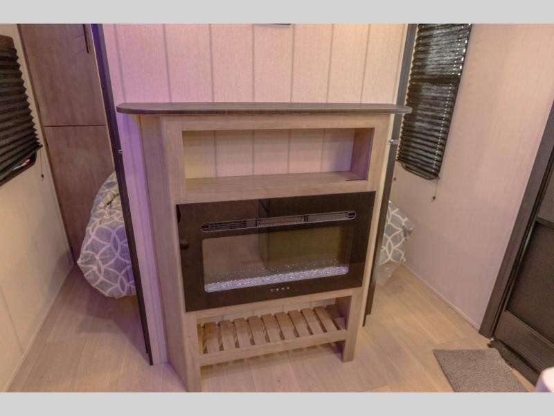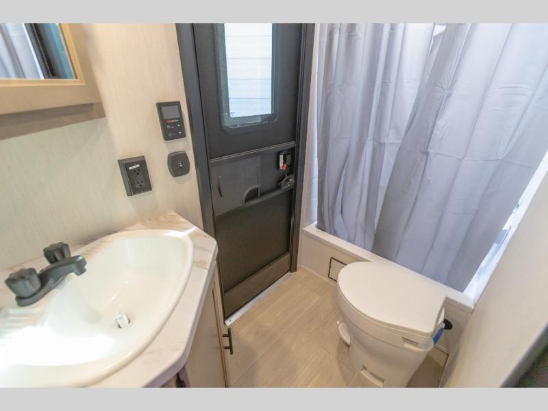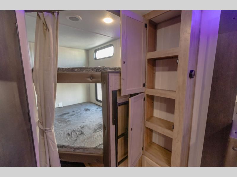 You will love the space provided in this dual entry Cherokee Grey Wolf travel trailer that has double-size bunks! The rear entry door leads right into the full bath allowing easy access from outside when you need to use the bathroom while you're enjoying the great outdoors. The large U-shaped dinette slide will not only seat everyone comfortably for a meal or a game, but since it also slides out, it opens up the interior even more to give you plenty of space for foot traffic. For all of your outdoor gear, you will find the outside storage compartments handy for stowing away your things when not in use. While the kids enjoy their bunk beds, you will enjoy a good night's rest in your RV king bed with wardrobes on either side up in the front private bedroom!