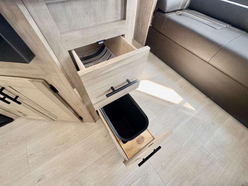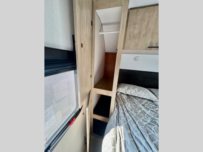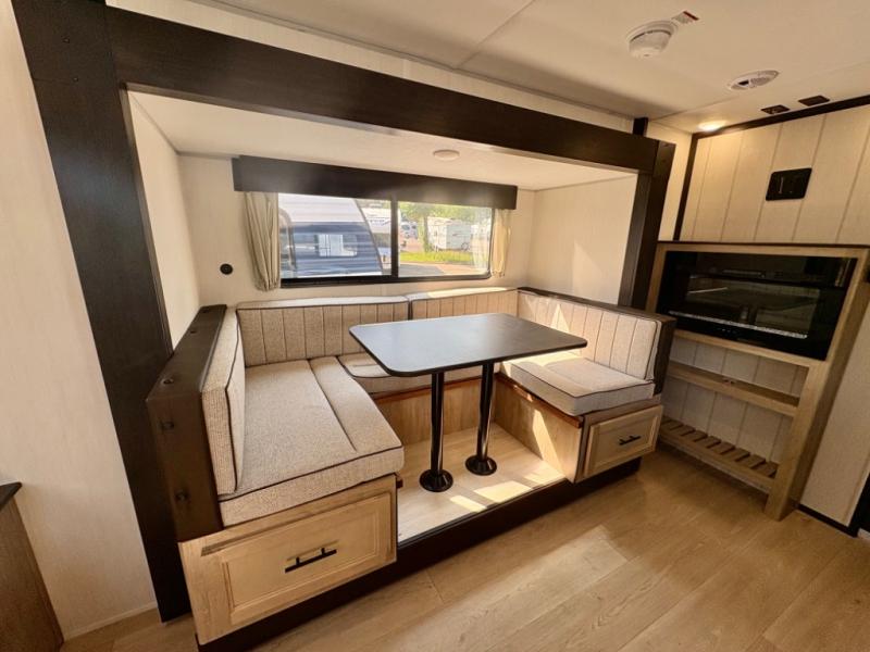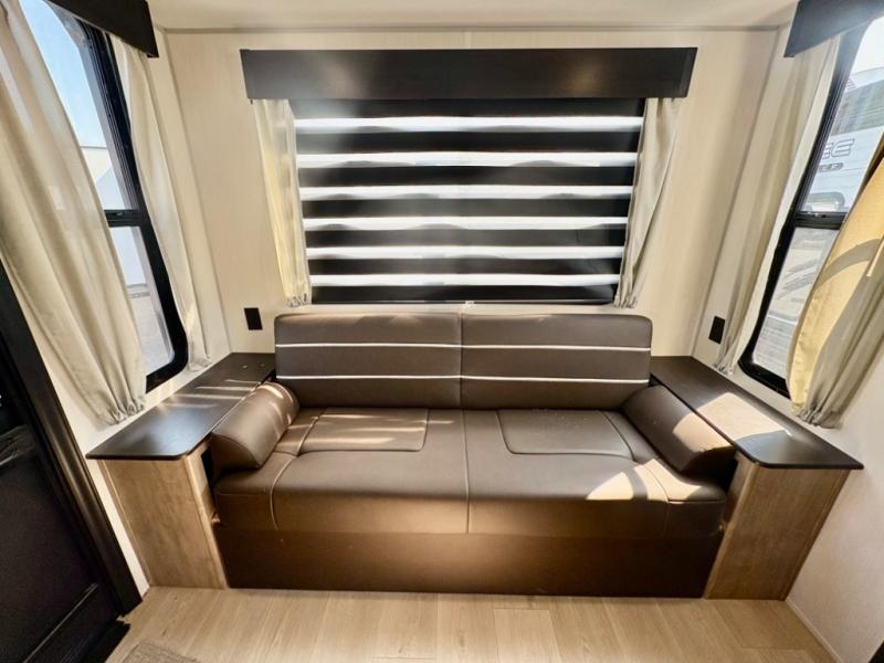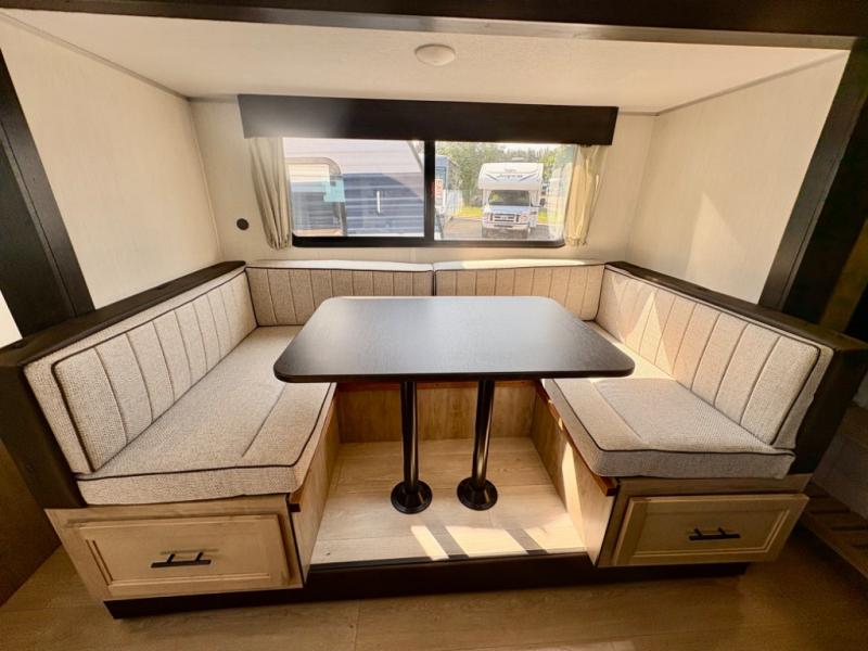 This Cherokee Grey Wolf travel trailer is perfect for your small family and will leave you planning your next outing before you are back from your current weekend away! You will find all of the comforts you need with plenty of livable space including a U-shaped dinette slide. There is also a sofa for more seating when company arrives, and there are end tables on either side to prevent spills. A spacious walk-through bath leads to a front private bedroom where you will enjoy a great night's rest on a comfortable RV king bed. You will find ample storage for clothing in the wardrobes that are above handy nightstands for your personal things. There are even lights mounted above the bed on each side which makes it easy to read a couple of chapters before drifting off to sleep.