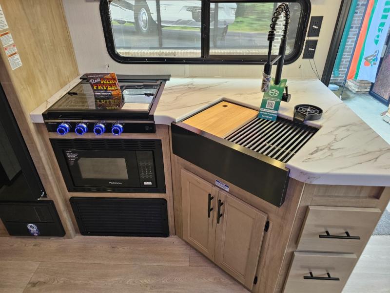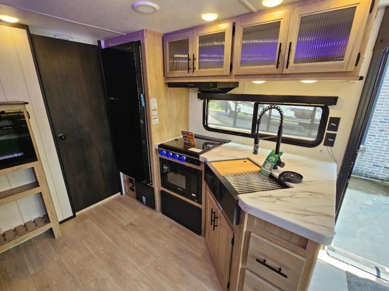 This compact yet feature-rich trailer offers the perfect balance of comfort, style, and convenience. Whether you’re relaxing indoors or cooking under the stars, the Grey Wolf 23MK is built to make every trip feel like home.