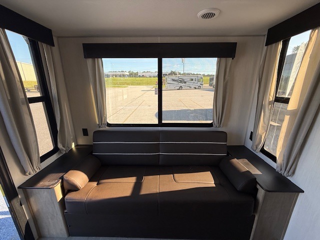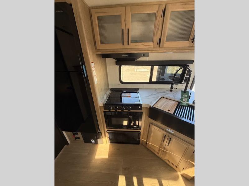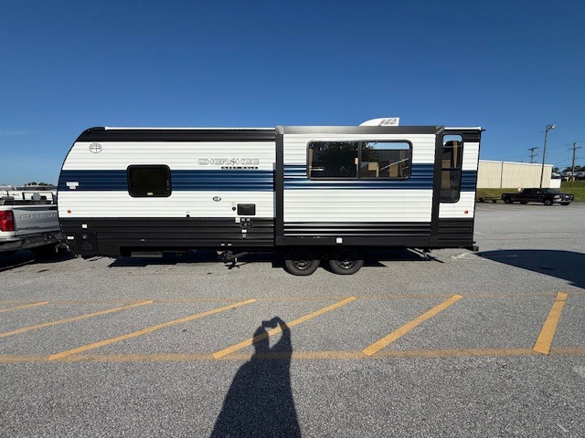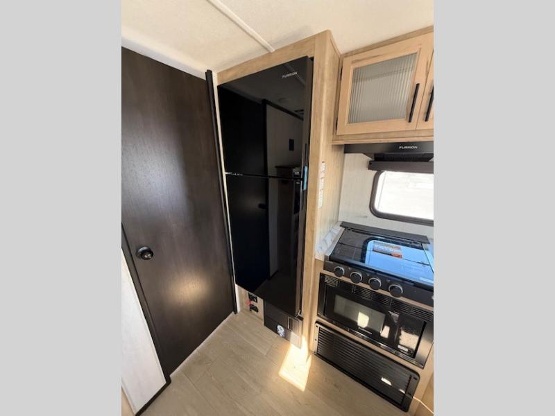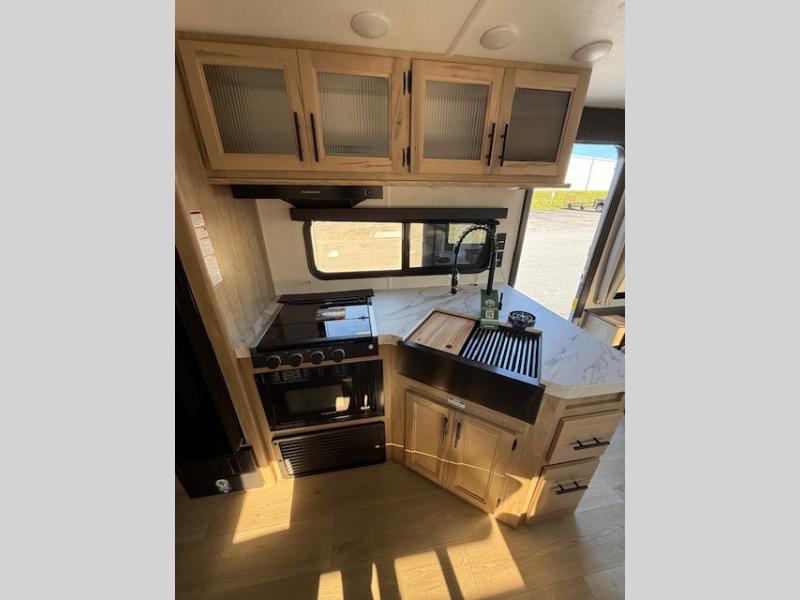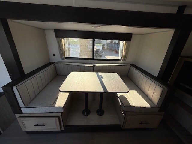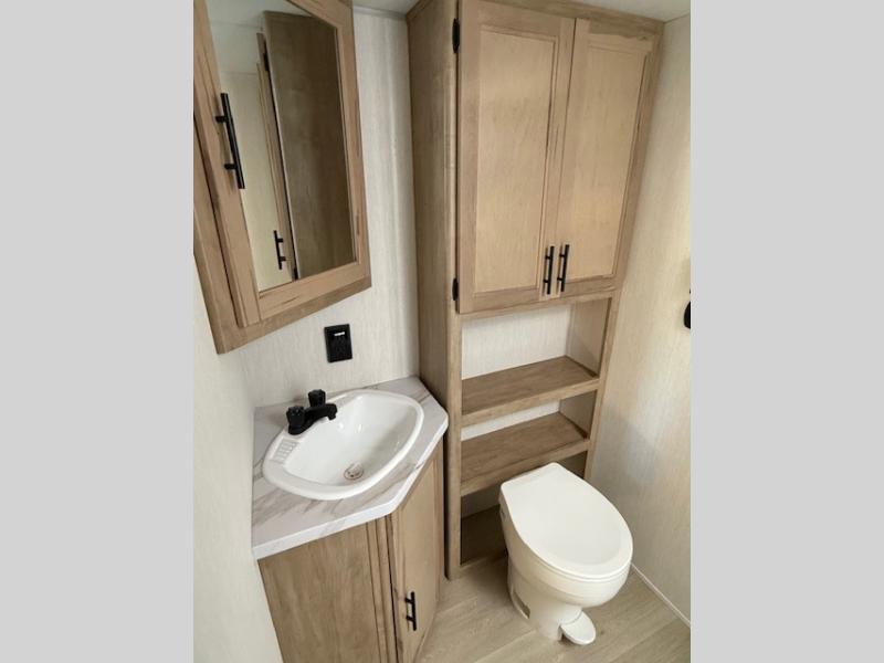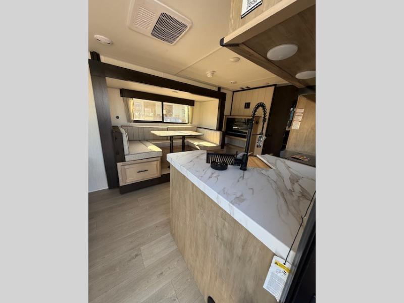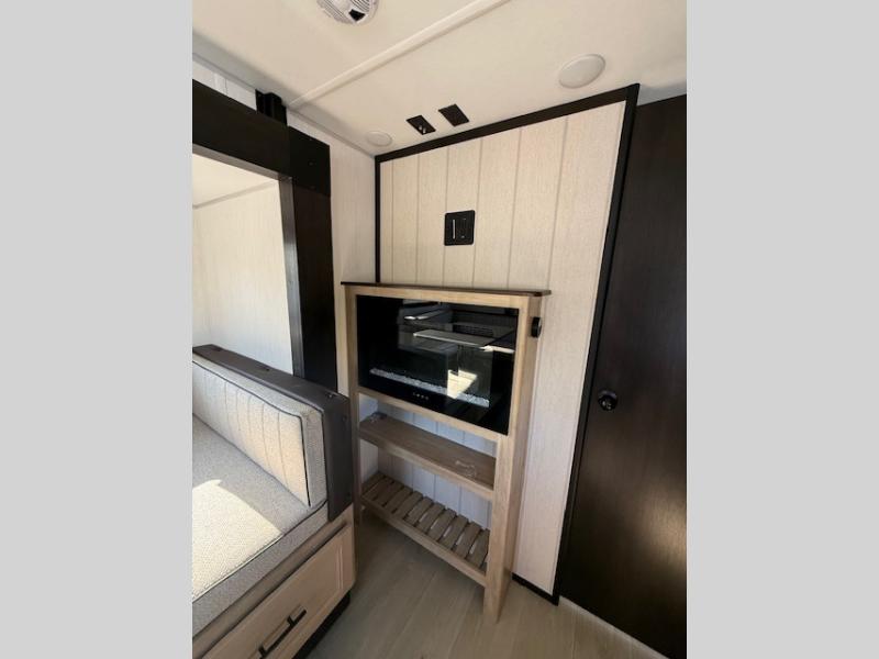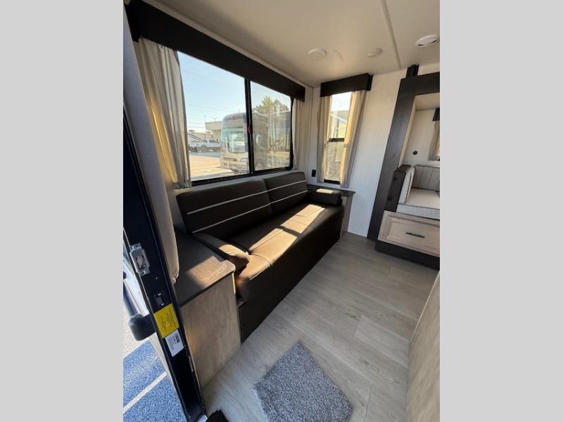 This Cherokee Grey Wolf travel trailer is perfect for your small family and will leave you planning your next outing before you are back from your current weekend away! You will find all of the comforts you need with plenty of livable space including a U-shaped dinette slide. There is also a sofa for more seating when company arrives, and there are end tables on either side to prevent spills. A spacious walk-through bath leads to a front private bedroom where you will enjoy a great night's rest on a comfortable RV king bed. You will find ample storage for clothing in the wardrobes that are above handy nightstands for your personal things. There are even lights mounted above the bed on each side which makes it easy to read a couple of chapters before drifting off to sleep.