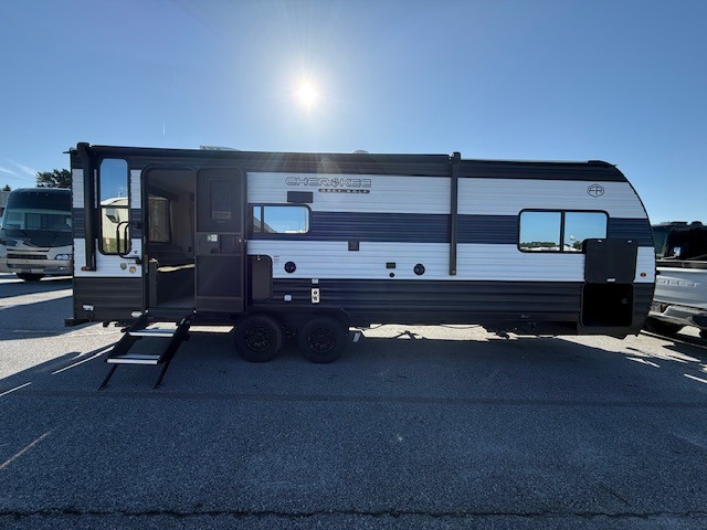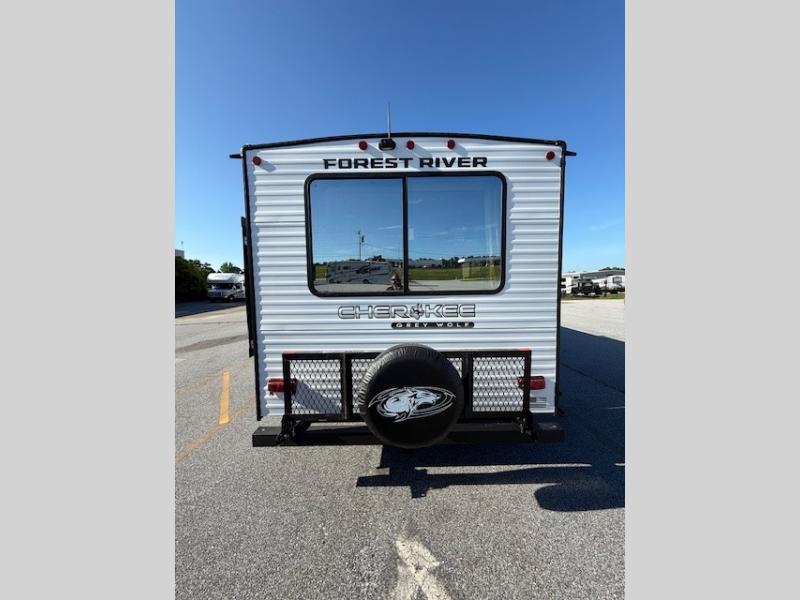 Whether it's a journey that will take you to new locations or a tried-and-true getaway to that favorite and memorable destination, the Forest River Cherokee Grey Wolf travel trailers and toy haulers are going to make the trip worth it every single time! You can travel in confidence with the premium wheel package, seamless roofing membrane with heat reflectivity, Power Gear frame technology with space-saver rail design, and Cherokee back-up camera system. The Cherokee Grey Wolf's interior is highly attractive with its stainless steel kitchen suite package and premium bedding ensemble and comforter. You will also find a black waste tank flush-out kit, an outside shower with hot and cold water, an armored underbelly tank enclosure, and an RV grill quick connect.