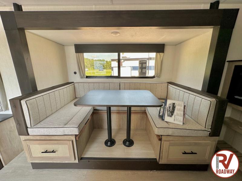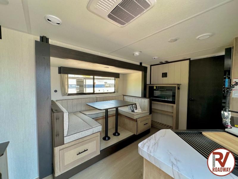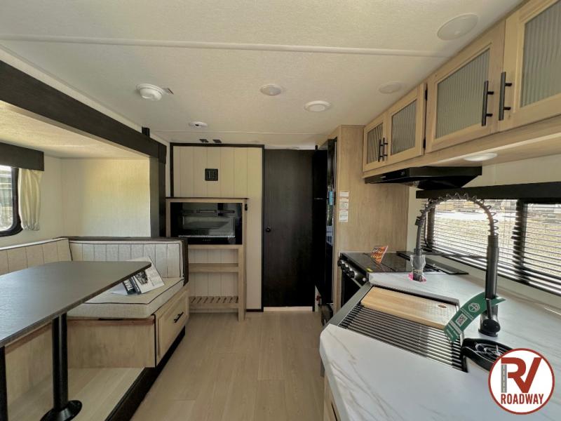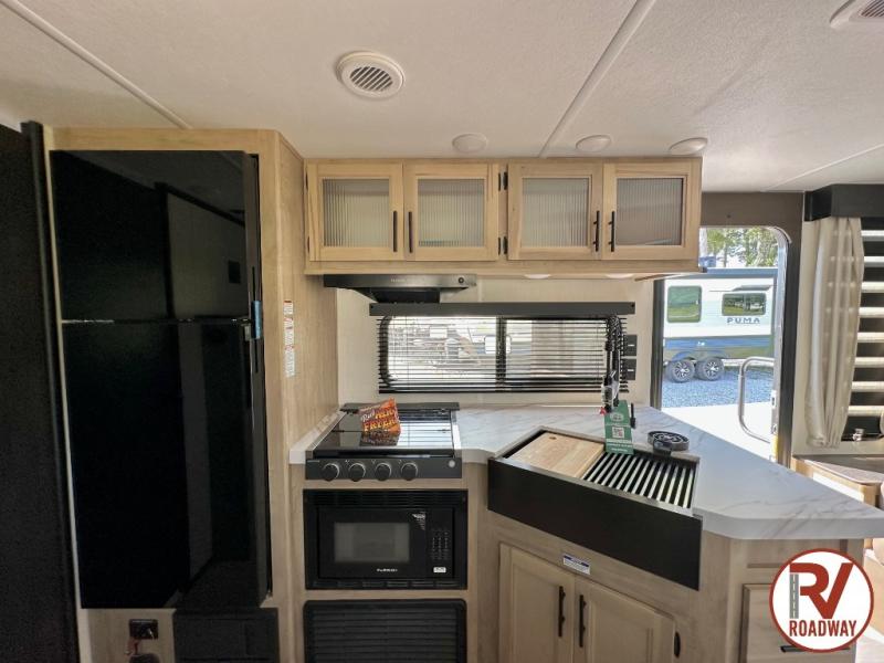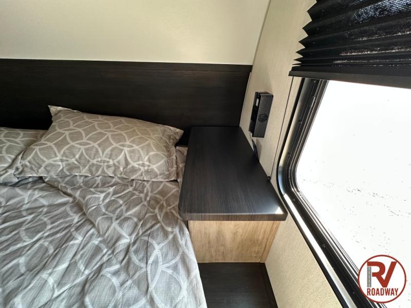 This Cherokee Grey Wolf travel trailer is perfect for your small family and will leave you planning your next outing before you are back from your current weekend away! You will find all of the comforts you need with plenty of livable space including a U-shaped dinette slide. There is also a sofa for more seating when company arrives, and there are end tables on either side to prevent spills. A spacious walk-through bath leads to a front private bedroom where you will enjoy a great night's rest on a comfortable RV king bed. You will find ample storage for clothing in the wardrobes that are above handy nightstands for your personal things. There are even lights mounted above the bed on each side which makes it easy to read a couple of chapters before drifting off to sleep.
