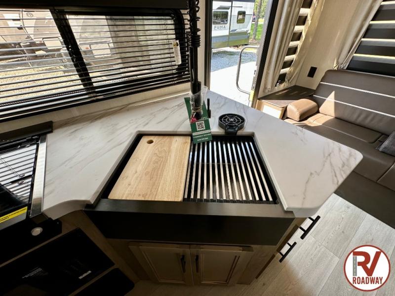 Whether it's a journey that will take you to new locations or a tried-and-true getaway to that favorite and memorable destination, the Forest River Cherokee Grey Wolf travel trailers and toy haulers are going to make the trip worth it every single time! You can travel in confidence with the premium wheel package, seamless roofing membrane with heat reflectivity, Power Gear frame technology with space-saver rail design, and Cherokee back-up camera system. The Cherokee Grey Wolf's interior is highly attractive with its stainless steel kitchen suite package and premium bedding ensemble and comforter. You will also find a black waste tank flush-out kit, an outside shower with hot and cold water, an armored underbelly tank enclosure, and an RV grill quick connect.