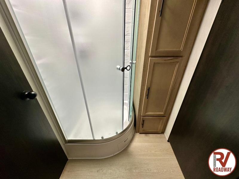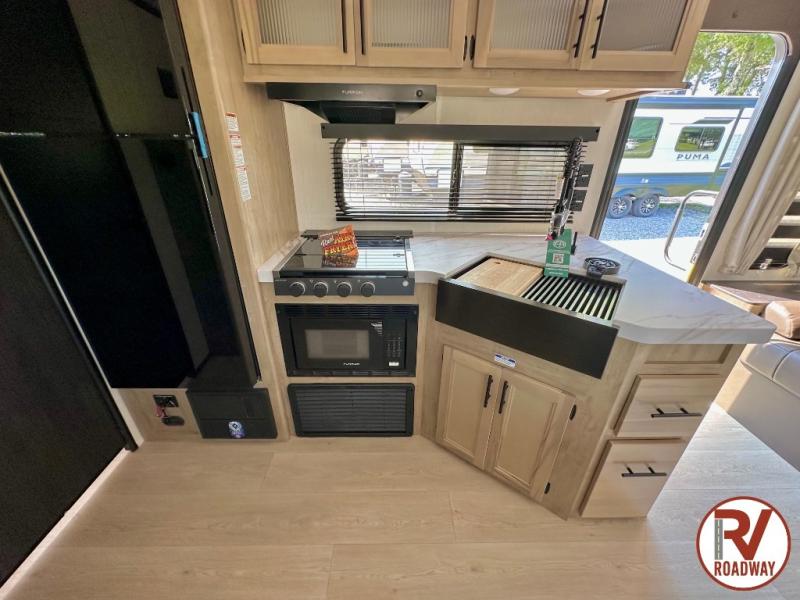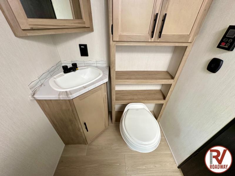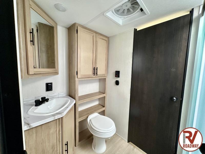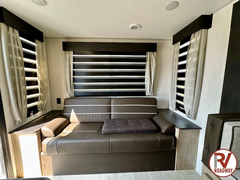 This Cherokee Grey Wolf travel trailer is perfect for your small family and will leave you planning your next outing before you are back from your current weekend away! You will find all of the comforts you need with plenty of livable space including a U-shaped dinette slide. There is also a sofa for more seating when company arrives, and there are end tables on either side to prevent spills. A spacious walk-through bath leads to a front private bedroom where you will enjoy a great night's rest on a comfortable RV king bed. You will find ample storage for clothing in the wardrobes that are above handy nightstands for your personal things. There are even lights mounted above the bed on each side which makes it easy to read a couple of chapters before drifting off to sleep.