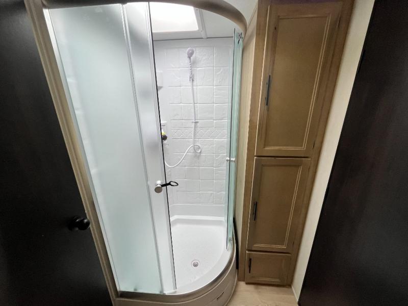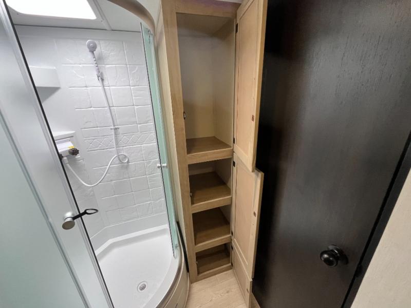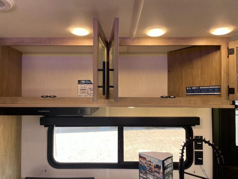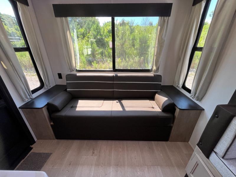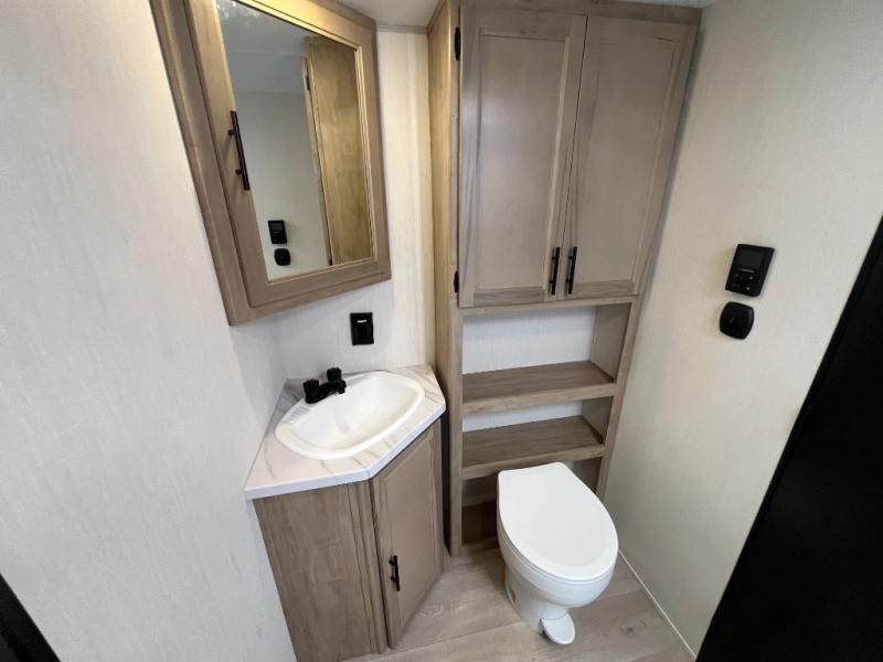 This Cherokee Grey Wolf travel trailer is perfect for your small family and will leave you planning your next outing before you are back from your current weekend away! You will find all of the comforts you need with plenty of livable space including a U-shaped dinette slide. There is also a sofa for more seating when company arrives, and there are end tables on either side to prevent spills. A spacious walk-through bath leads to a front private bedroom where you will enjoy a great night's rest on a comfortable RV king bed. You will find ample storage for clothing in the wardrobes that are above handy nightstands for your personal things. There are even lights mounted above the bed on each side which makes it easy to read a couple of chapters before drifting off to sleep.