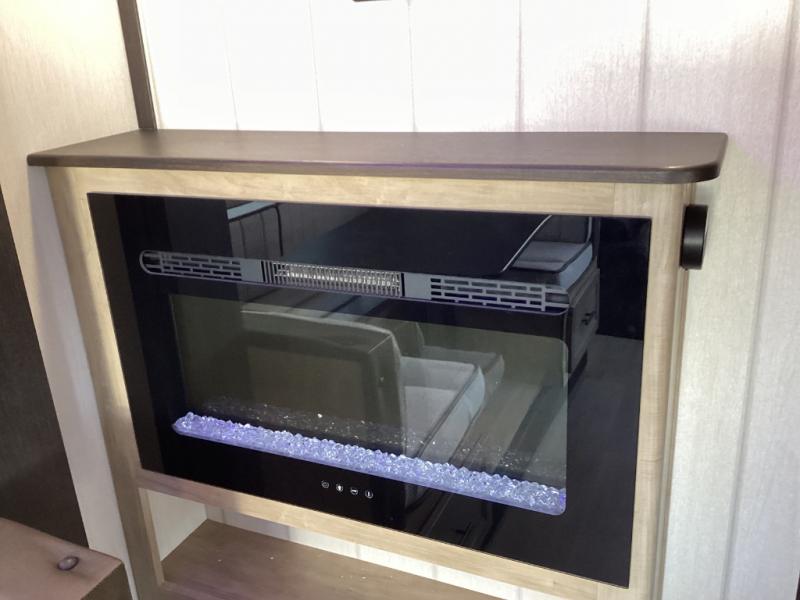 Includes solar prep, backup camera setup, fireplace option, and Bluetooth audio for on- and off-grid flexibility.