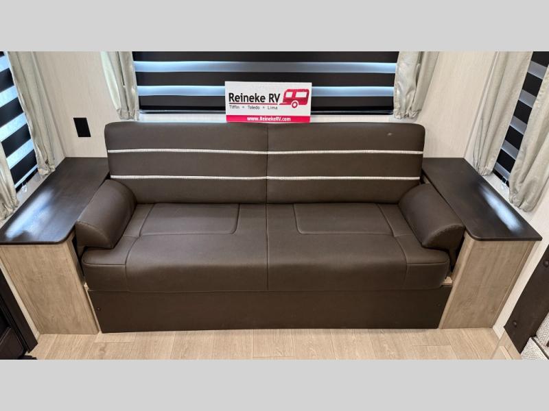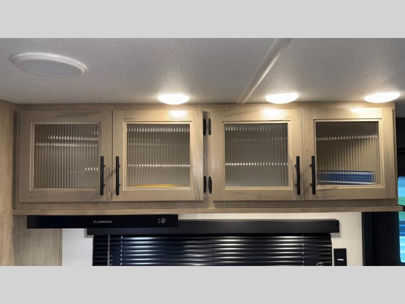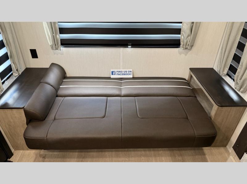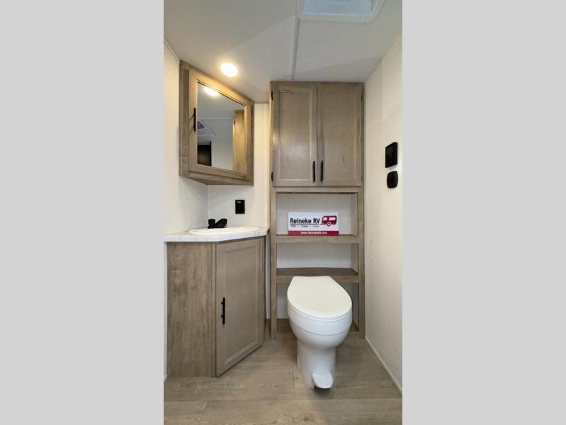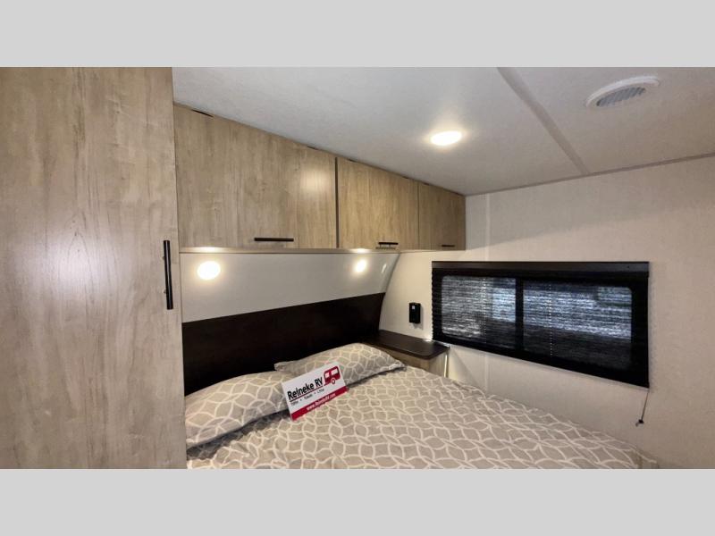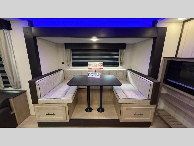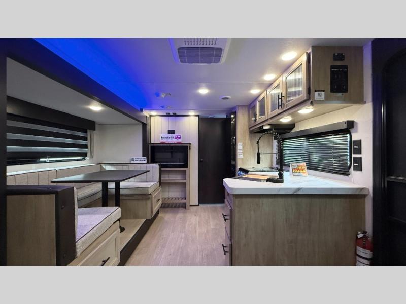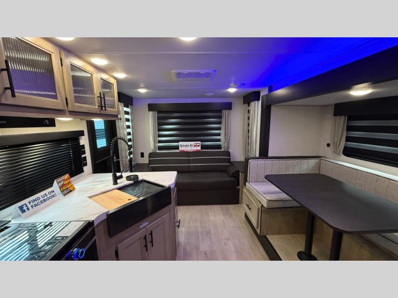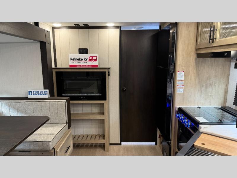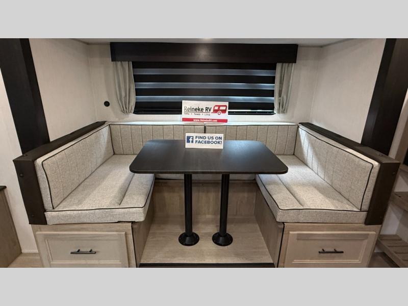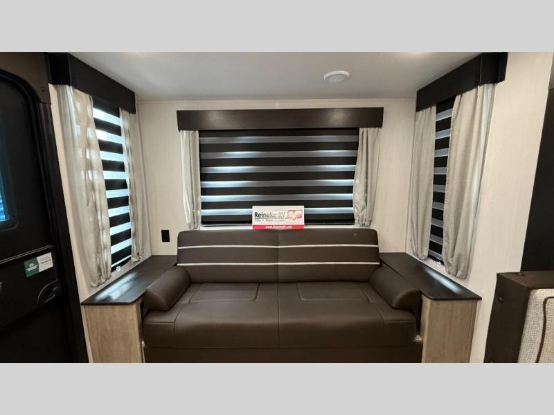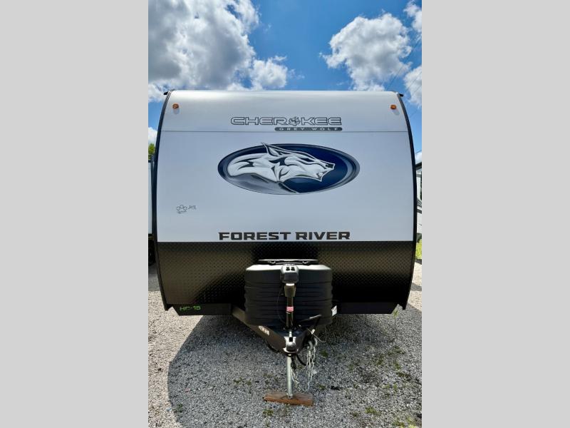 This Cherokee Grey Wolf travel trailer is perfect for your small family and will leave you planning your next outing before you are back from your current weekend away! You will find all of the comforts you need with plenty of livable space including a U-shaped dinette slide. There is also a sofa for more seating when company arrives, and there are end tables on either side to prevent spills. A spacious walk-through bath leads to a front private bedroom where you will enjoy a great night's rest on a comfortable RV king bed. You will find ample storage for clothing in the wardrobes that are above handy nightstands for your personal things. There are even lights mounted above the bed on each side which makes it easy to read a couple of chapters before drifting off to sleep.