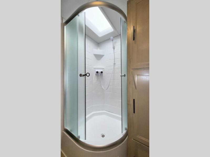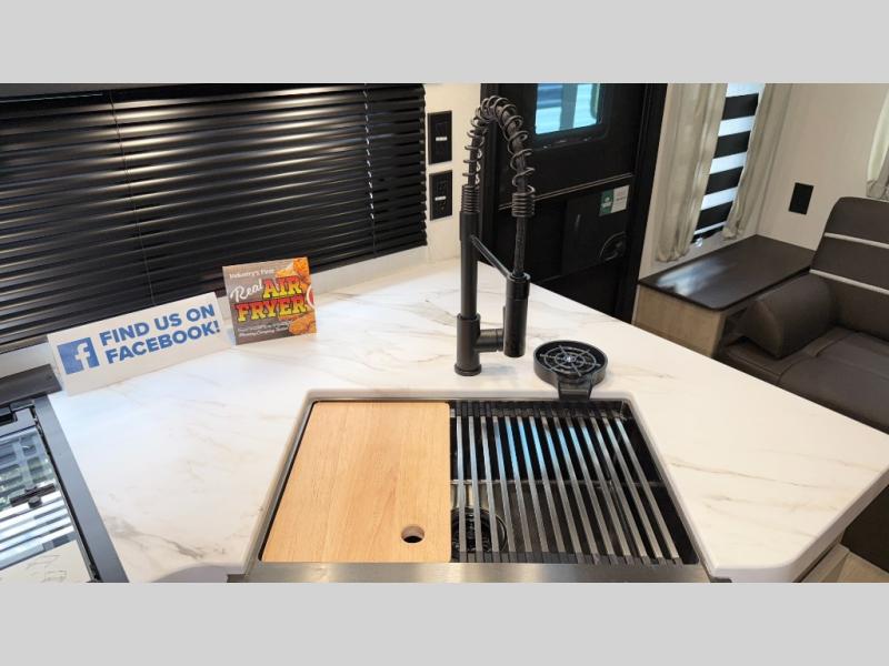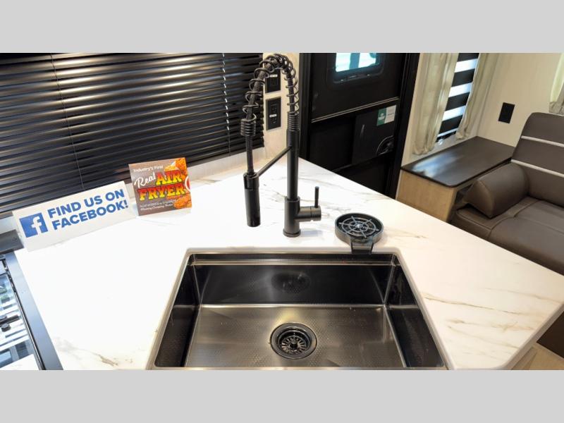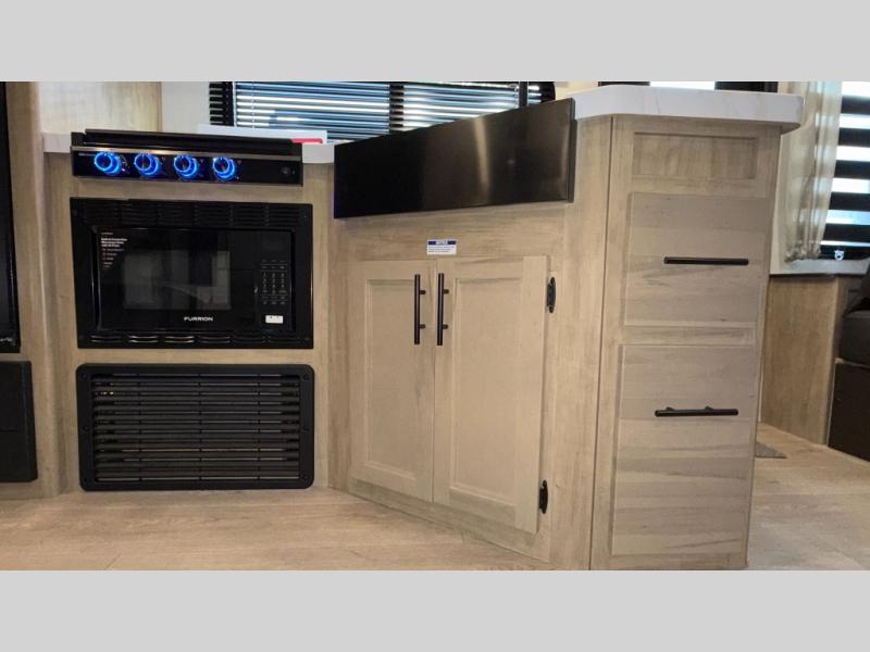 With King Bed, Back-Up Camera, Solar Panel, Tankless On-Demand Water Heater, Fireplace, Flip Down Tire Rack w/ Tire, Outdoor Fridge, Ice Maker & Shower