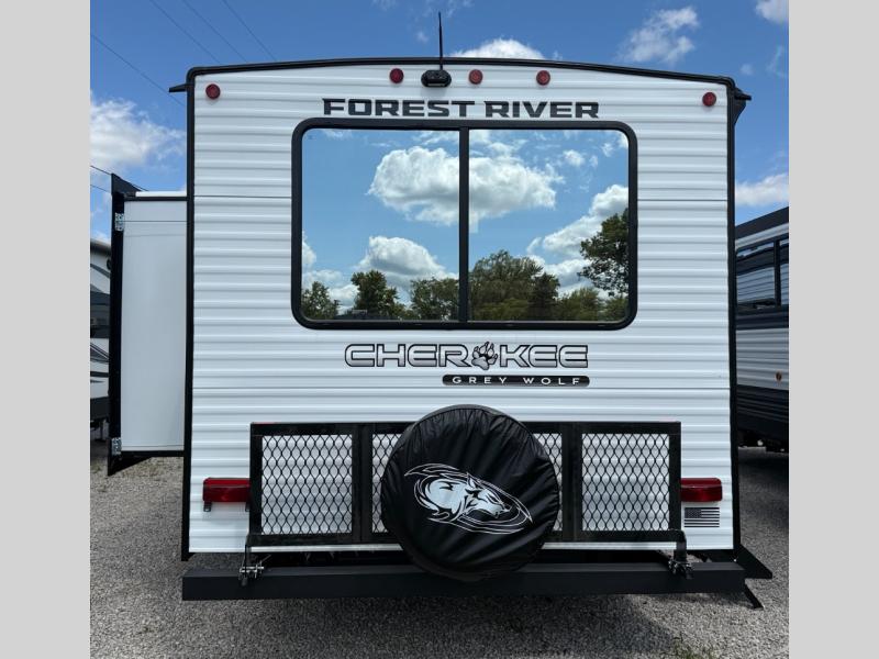 Whether it's a journey that will take you to new locations or a tried-and-true getaway to that favorite and memorable destination, the Forest River Cherokee Grey Wolf travel trailers and toy haulers are going to make the trip worth it every single time! You can travel in confidence with the premium wheel package, seamless roofing membrane with heat reflectivity, Power Gear frame technology with space-saver rail design, and Cherokee back-up camera system. The Cherokee Grey Wolf's interior is highly attractive with its stainless steel kitchen suite package and premium bedding ensemble and comforter. You will also find a black waste tank flush-out kit, an outside shower with hot and cold water, an armored underbelly tank enclosure, and an RV grill quick connect.