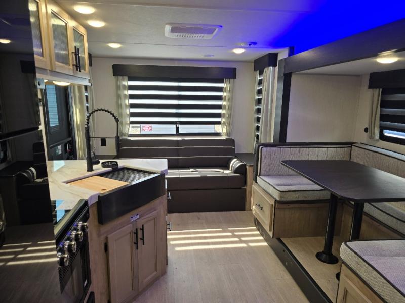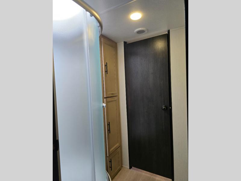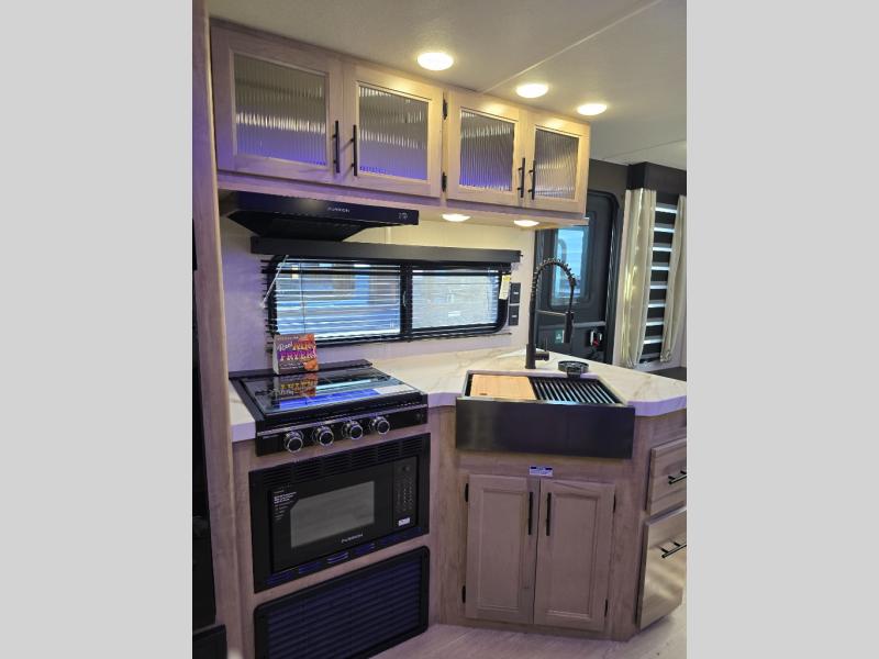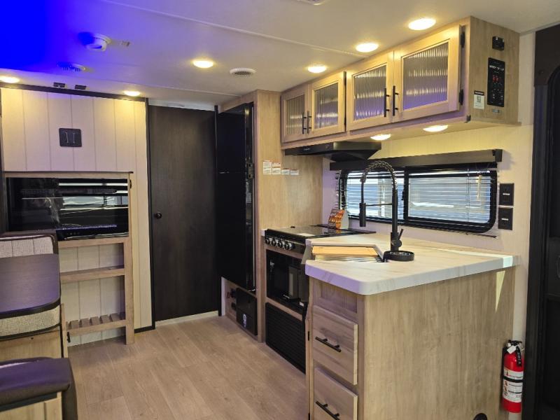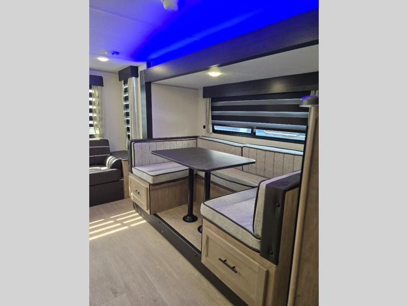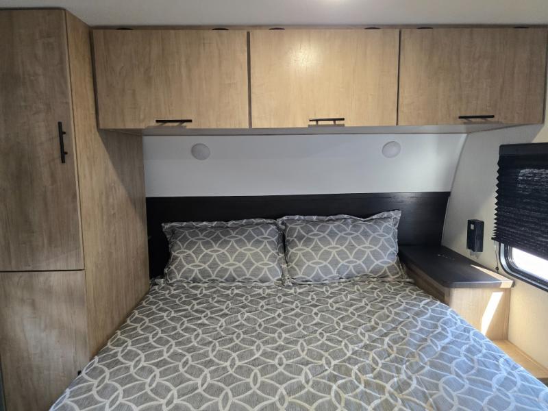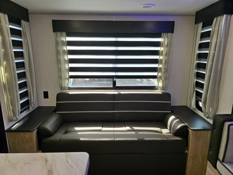 This Cherokee Grey Wolf travel trailer is perfect for your small family and will leave you planning your next outing before you are back from your current weekend away! You will find all of the comforts you need with plenty of livable space including a U-shaped dinette slide. There is also a sofa for more seating when company arrives, and there are end tables on either side to prevent spills. A spacious walk-through bath leads to a front private bedroom where you will enjoy a great night's rest on a comfortable RV king bed. You will find ample storage for clothing in the wardrobes that are above handy nightstands for your personal things.