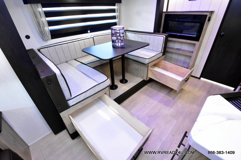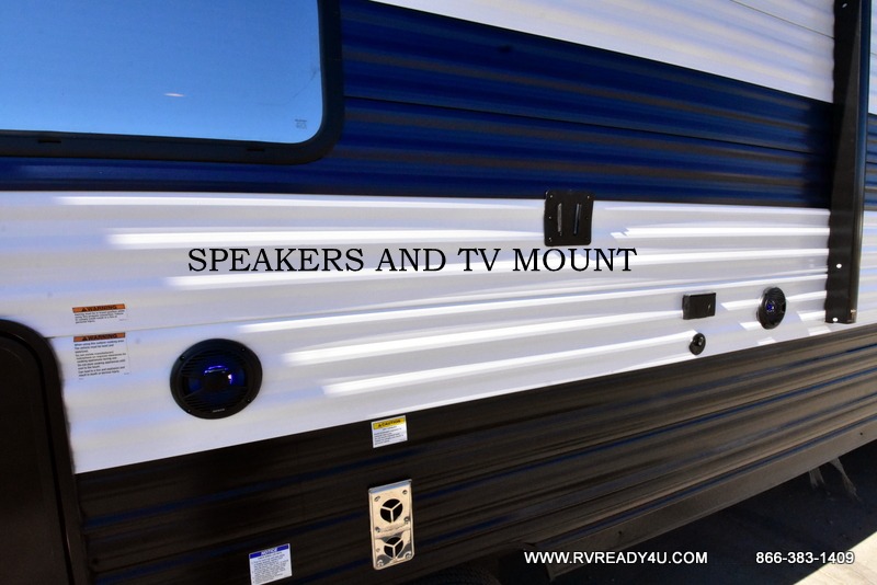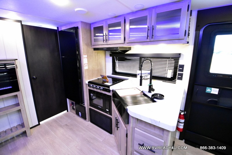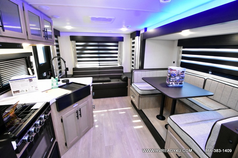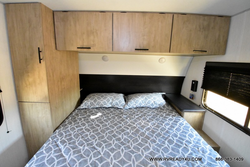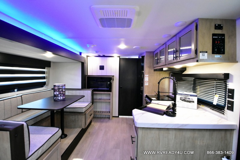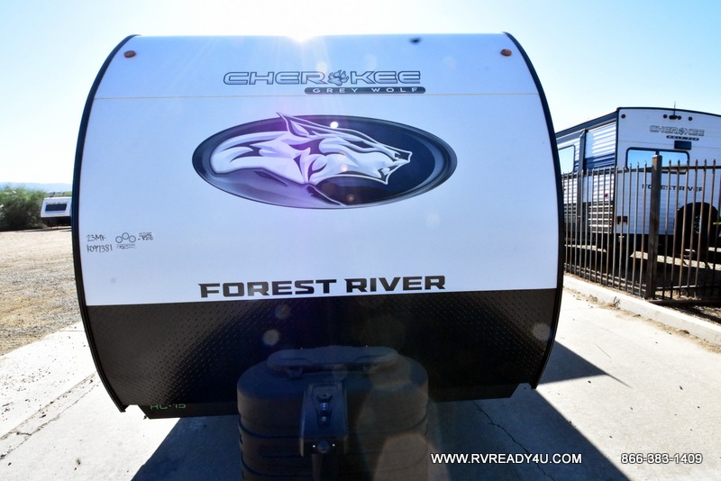 This Cherokee Grey Wolf travel trailer is perfect for your small family and will leave you planning your next outing before you are back from your current weekend away! You will find all of the comforts you need with plenty of livable space including a U-shaped dinette slide. There is also a sofa for more seating when company arrives, and there are end tables on either side to prevent spills. A spacious walk-through bath leads to a front private bedroom where you will enjoy a great night's rest on a comfortable RV king bed. You will find ample storage for clothing in the wardrobes that are above handy nightstands for your personal things.