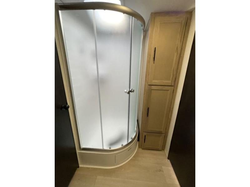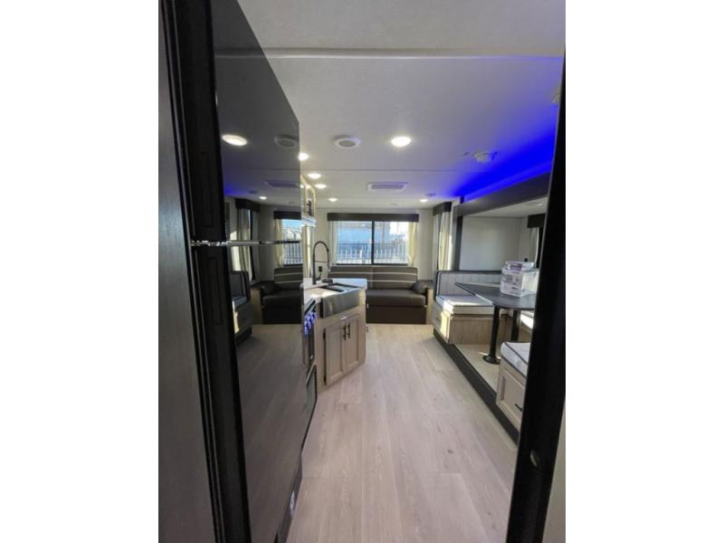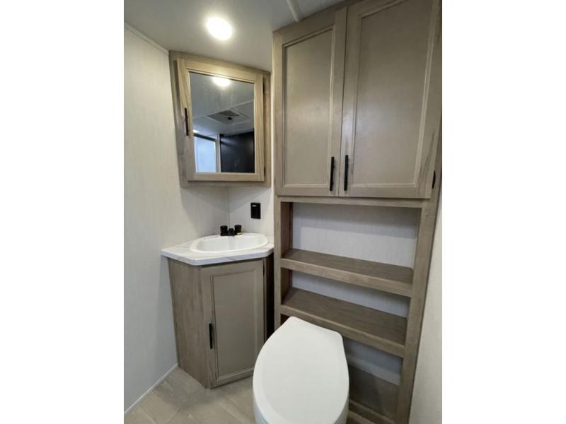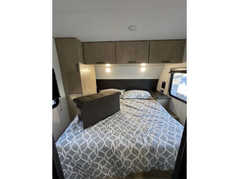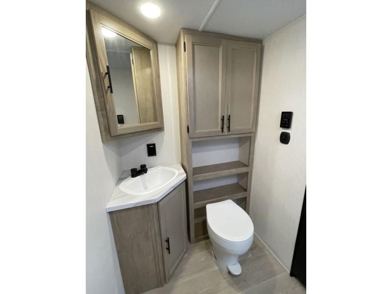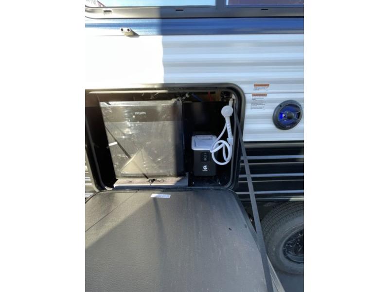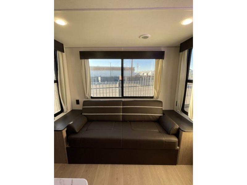 This Cherokee Grey Wolf travel trailer is perfect for your small family and will leave you planning your next outing before you are back from your current weekend away! You will find all of the comforts you need with plenty of livable space including a U-shaped dinette slide. There is also a sofa for more seating when company arrives, and there are end tables on either side to prevent spills. A spacious walk-through bath leads to a front private bedroom where you will enjoy a great night's rest on a comfortable RV king bed. You will find ample storage for clothing in the wardrobes that are above handy nightstands for your personal things.