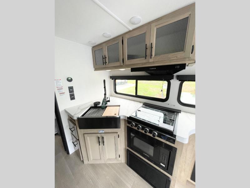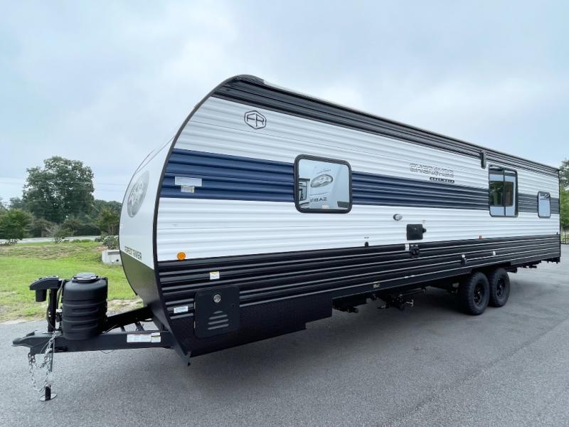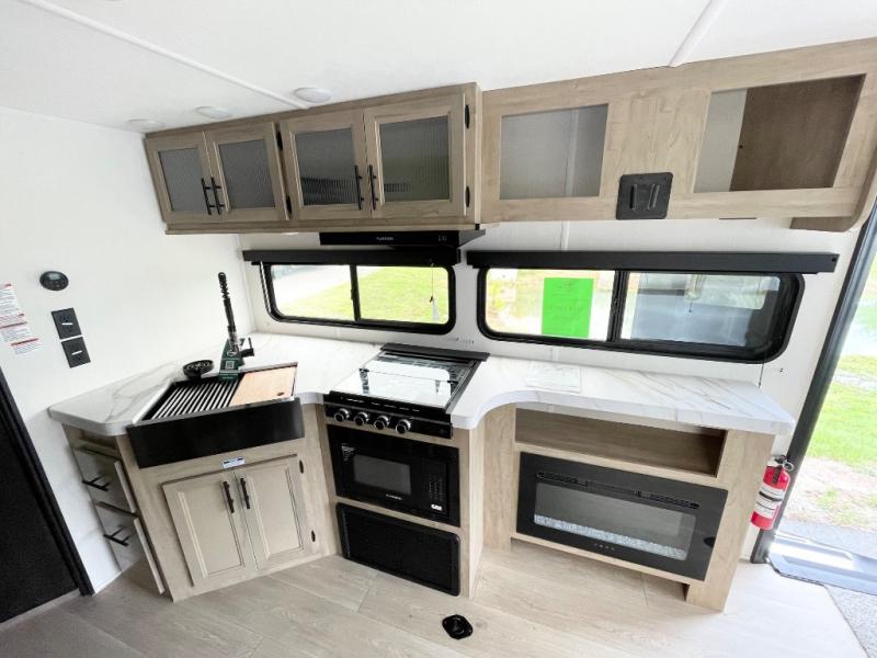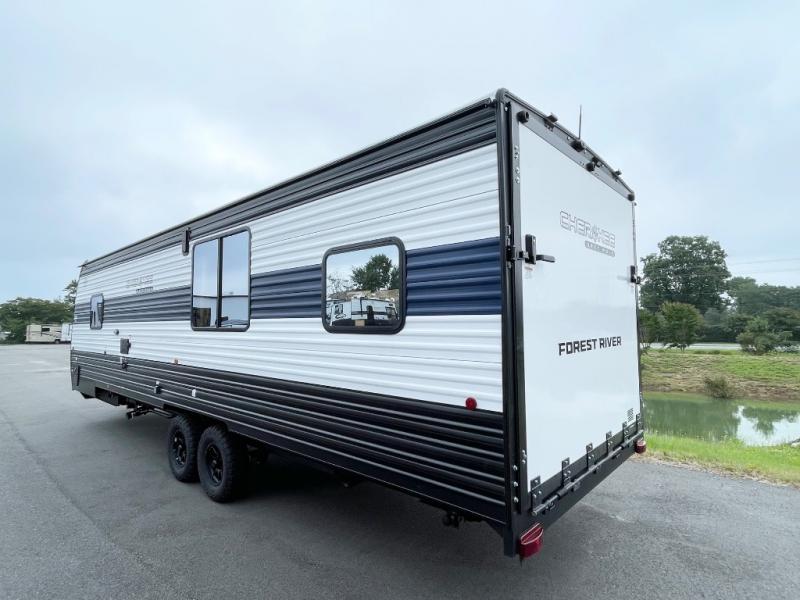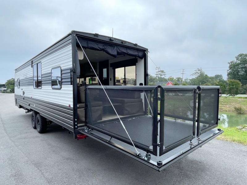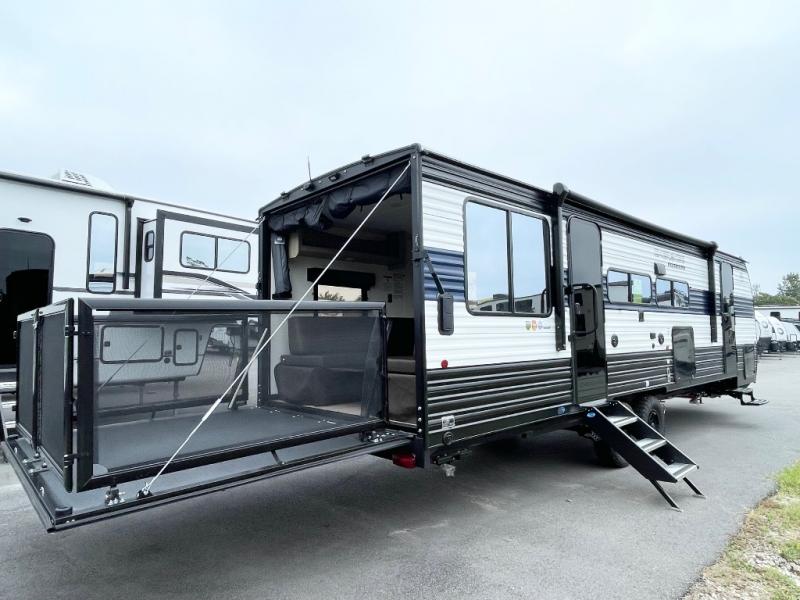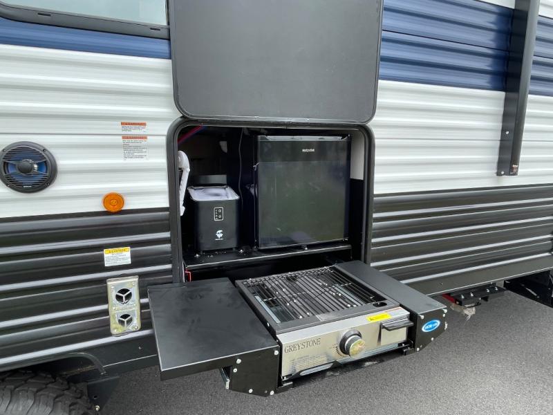 Whether it's a journey that will take you to new locations or a tried-and-true getaway to that favorite and memorable destination, the Forest River Cherokee Grey Wolf travel trailers and toy haulers are going to make the trip worth it every single time! You can travel in confidence with the premium wheel package, seamless roofing membrane with heat reflectivity, Power Gear frame technology with space-saver rail design, and Cherokee back-up camera system. The Cherokee Grey Wolf's interior is highly attractive with its stainless steel kitchen suite package and premium bedding ensemble and comforter. You will also find a black waste tank flush-out kit, an outside shower with hot and cold water, an armored underbelly tank enclosure, and an RV grill quick connect.