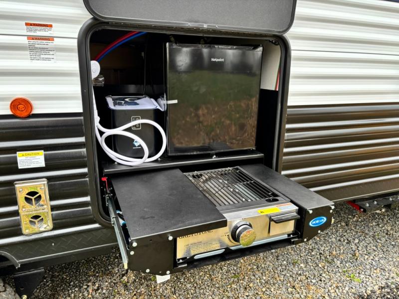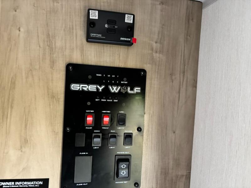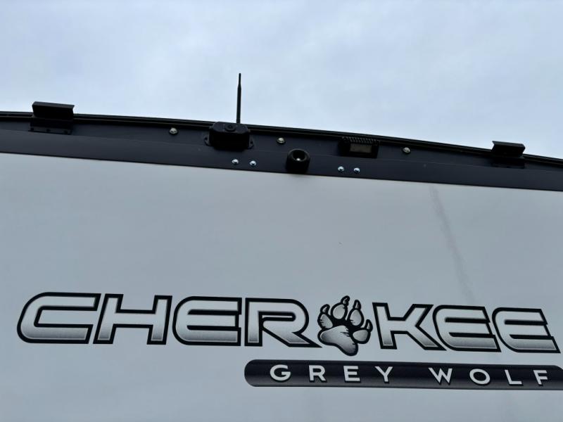 Whether it's a journey that will take you to new locations or a tried-and-true getaway to that favorite and memorable destination, the Forest River Cherokee Grey Wolf travel trailers and toy haulers are going to make the trip worth it every single time! You can travel in confidence with the premium wheel package, seamless roofing membrane with heat reflectivity, Power Gear frame technology with space-saver rail design, and Cherokee back-up camera system. The Cherokee Grey Wolf's interior is highly attractive with its stainless steel kitchen suite package and premium bedding ensemble and comforter. You will also find a black waste tank flush-out kit, an outside shower with hot and cold water, an armored underbelly tank enclosure, and an RV grill quick connect.