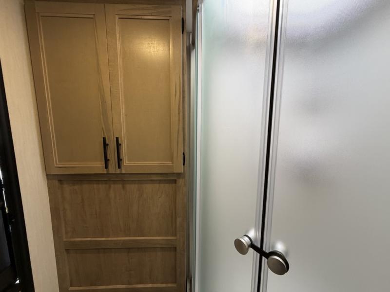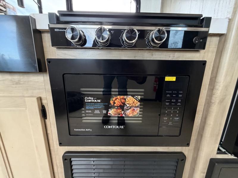 Take this Cherokee Grey Wolf toy hauler out to the campground of your choice for loads of outdoor fun! Create delicious dinners with the fabulous features found in the kitchen, like air fryer and residential farm-style stainless steel sink. For a comfortable night of rest, head to the front master suite where you will find an RV king bed, dual wardrobes, and a TV mount. You will even be able to host any neighbors that drop by with the fold-down sofas and removable table.