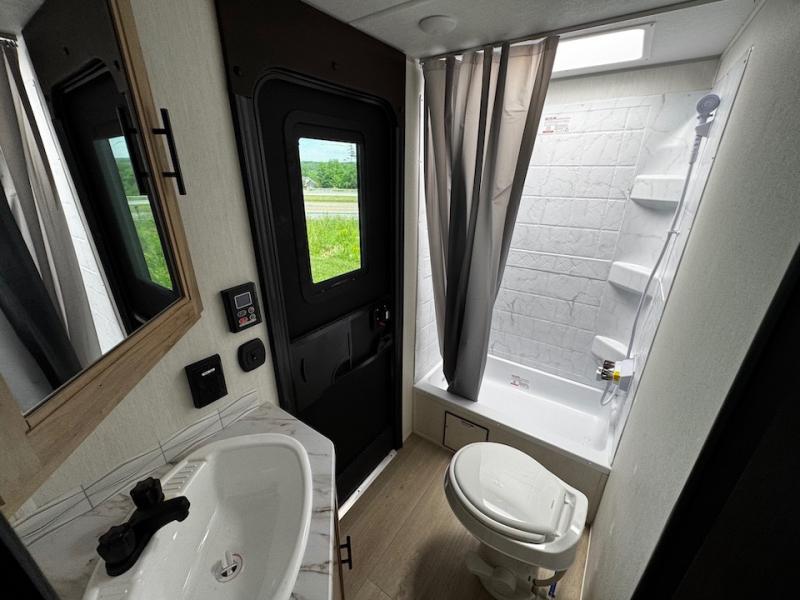 Whether it's a journey that will take you to new locations or a tried-and-true getaway to that favorite and memorable destination, the Forest River Cherokee Grey Wolf travel trailers and toy haulers are going to make the trip worth it every single time! You can travel in confidence with the premium wheel package, seamless roofing membrane with heat reflectivity, Power Gear frame technology with space-saver rail design, and Cherokee back-up camera system. The Cherokee Grey Wolf's interior is highly attractive with its stainless steel kitchen suite package and premium bedding ensemble and comforter. You will also find a black waste tank flush-out kit, an outside shower with hot and cold water, an armored underbelly tank enclosure, and an RV grill quick connect.