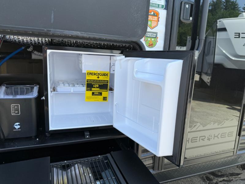 Whether it's a journey that will take you to new locations or a tried-and-true getaway to that favorite and memorable destination, the Forest River Cherokee Grey Wolf travel trailers and toy haulers are going to make the trip worth it every single time! You can travel in confidence with the premium wheel package, seamless roofing membrane with heat reflectivity, Power Gear frame technology with space-saver rail design, and Cherokee back-up camera system. The Cherokee Grey Wolf's interior is highly attractive with its stainless steel kitchen suite package and premium bedding ensemble and comforter. You will also find a black waste tank flush-out kit, an outside shower with hot and cold water, an armored underbelly tank enclosure, and an RV grill quick connect.