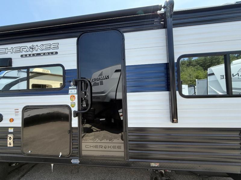 Whether it's a journey that will take you to new locations or a tried-and-true getaway to that favorite and memorable destination, the Forest River Cherokee Grey Wolf travel trailers and toy haulers are going to make the trip worth it every single time! You can travel in confidence with the premium wheel package, seamless roofing membrane with heat reflectivity, Power Gear frame technology with space-saver rail design, and Cherokee back-up camera system. The Cherokee Grey Wolf's interior is highly attractive with its stainless steel kitchen suite package and premium bedding ensemble and comforter. You will also find a black waste tank flush-out kit, an outside shower with hot and cold water, an armored underbelly tank enclosure, and an RV grill quick connect.