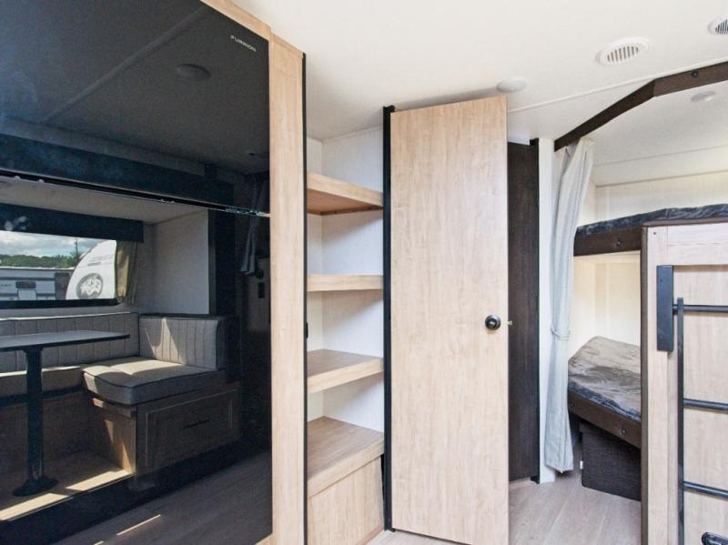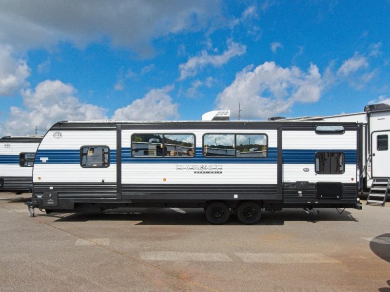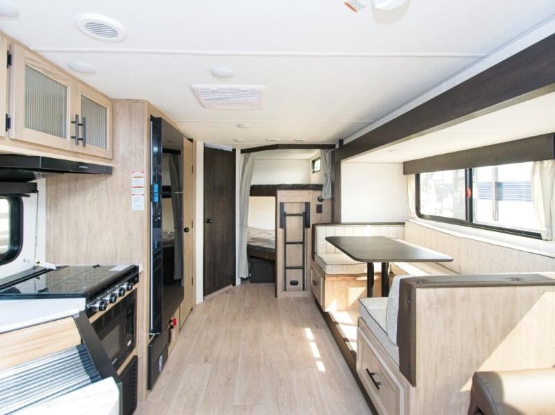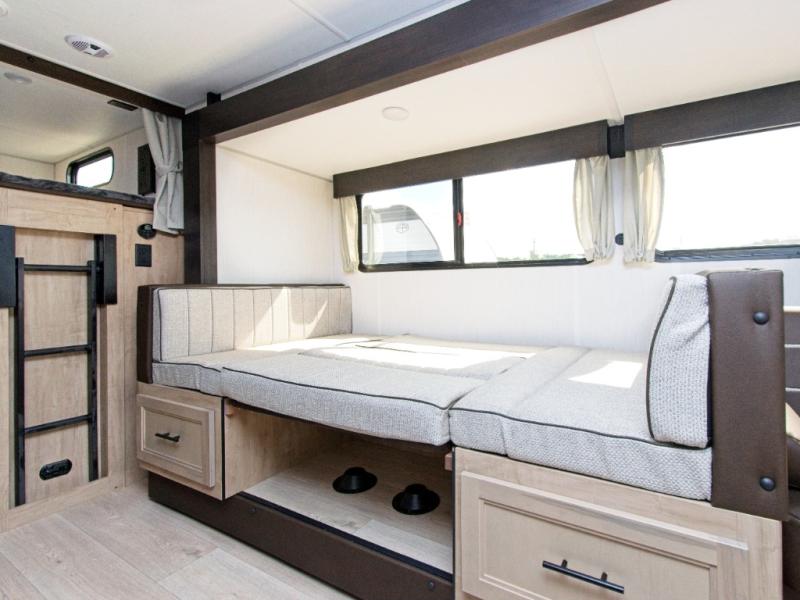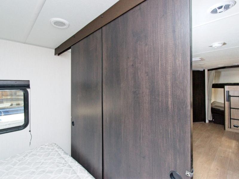 Enjoy family adventures in the Forest River Cherokee Grey Wolf 26DBH, featuring double-size bunk beds and dual entry doors for maximum comfort and convenience.