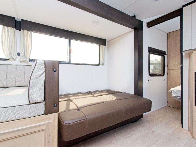 - Double-Size Rear Bunk Beds with Privacy Curtains