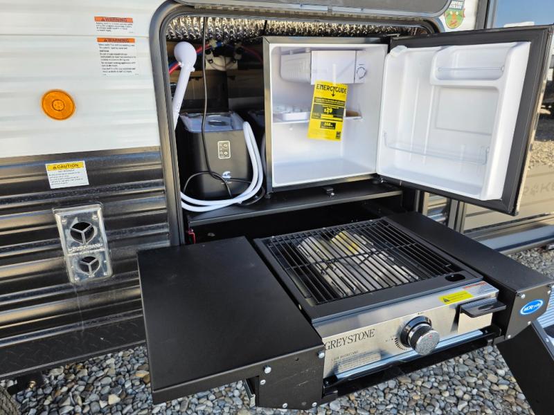 Whether it's a journey that will take you to new locations or a tried-and-true getaway to that favorite and memorable destination, the Forest River Cherokee Grey Wolf travel trailers and toy haulers are going to make the trip worth it every single time! You can travel in confidence with the premium wheel package, seamless roofing membrane with heat reflectivity, Power Gear frame technology with space-saver rail design, and Cherokee back-up camera system. The Cherokee Grey Wolf's interior is highly attractive with its stainless steel kitchen suite package and premium bedding ensemble and comforter. You will also find a black waste tank flush-out kit, an outside shower with hot and cold water, an armored underbelly tank enclosure, and an RV grill quick connect.