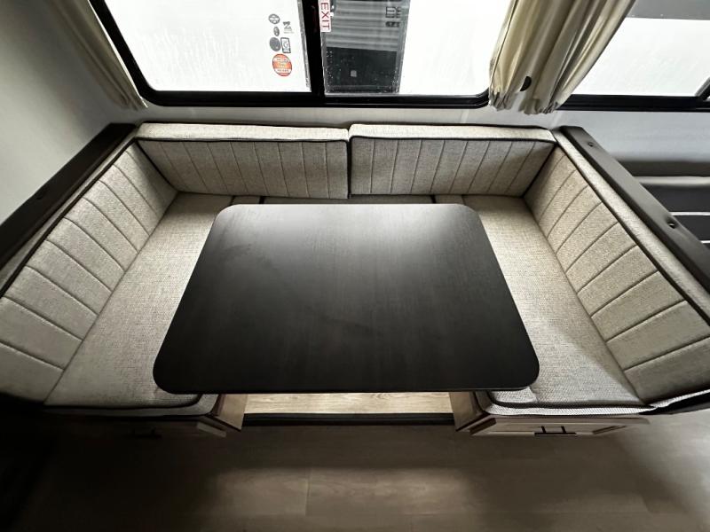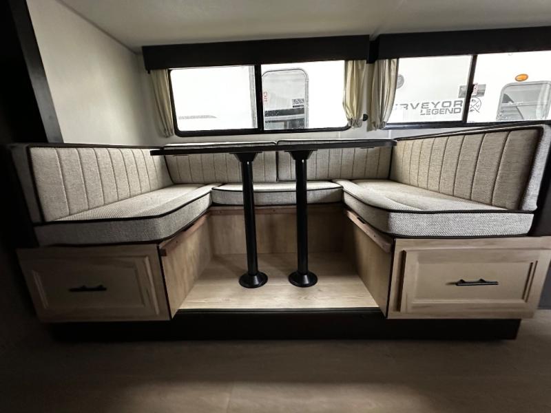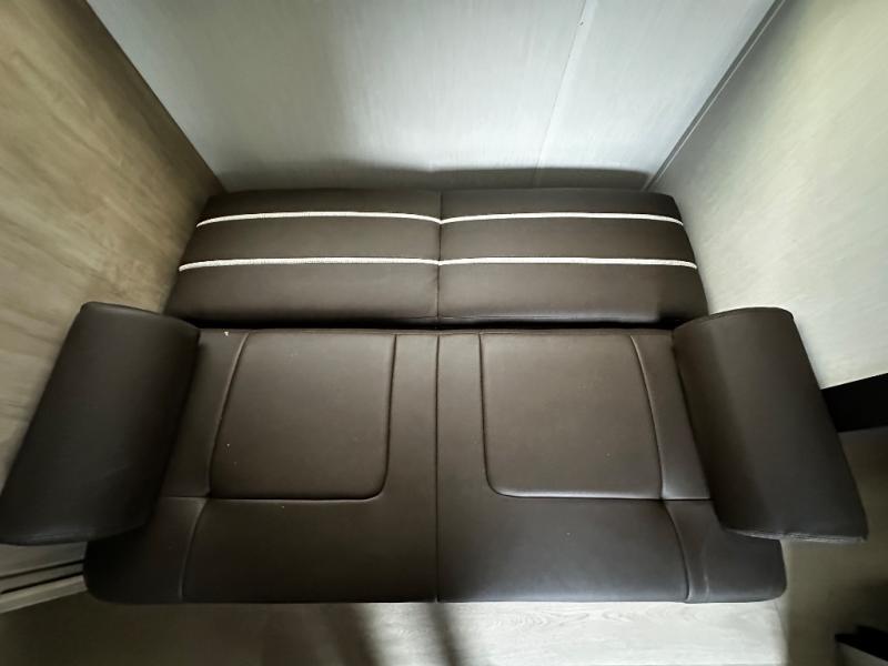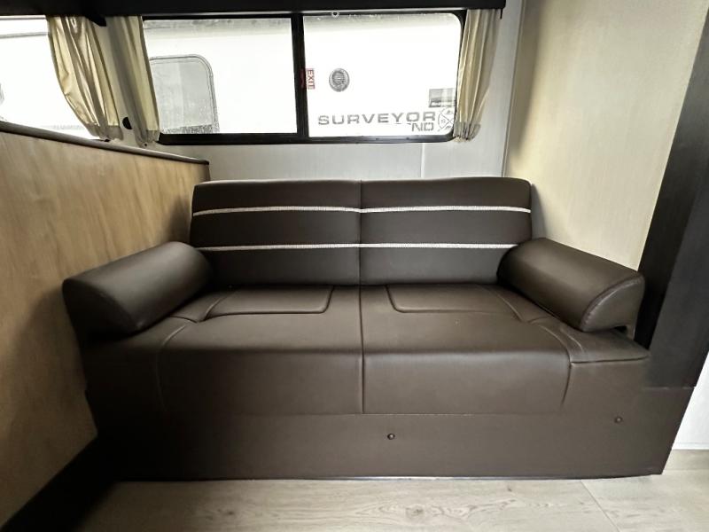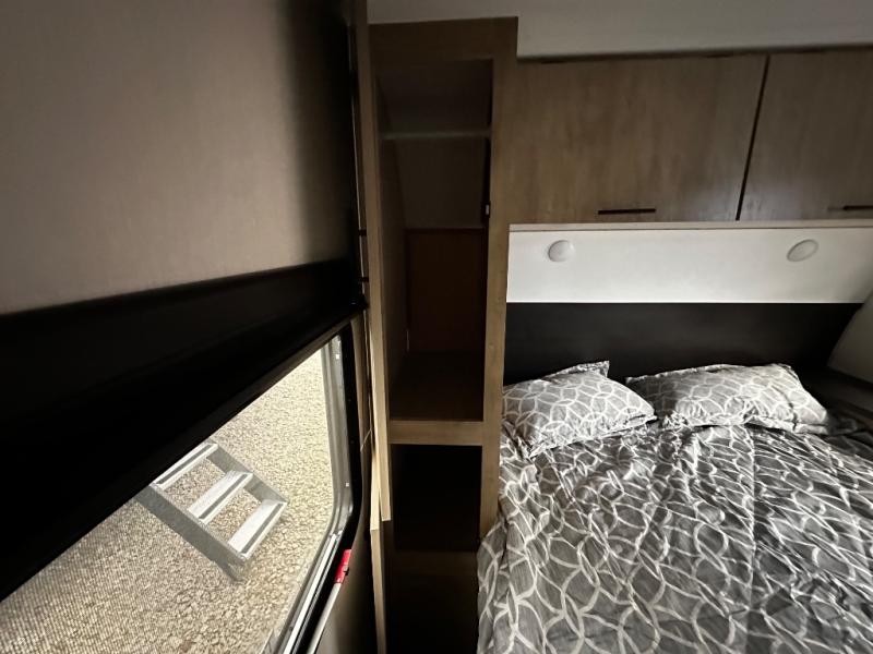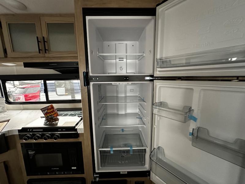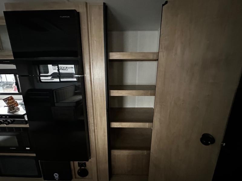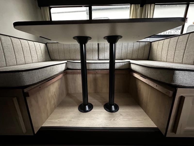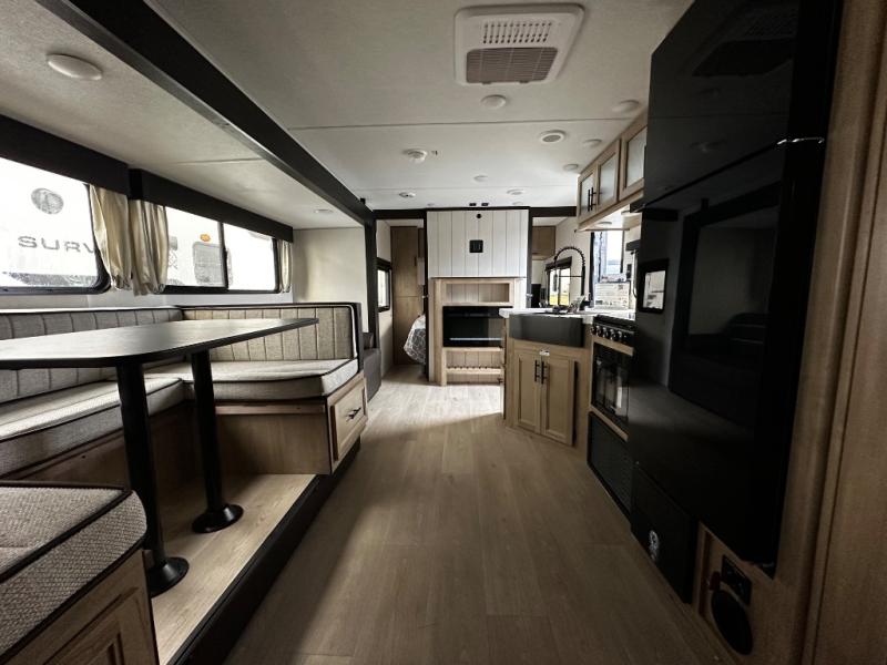 Come on inside this Cherokee Grey Wolf travel trailer and experience the convenience of a smooth flow of traffic in and out with two entry doors. The rear door leads into a full bath which is great for accessibility. Once inside, you will notice the large U-shaped dinette and the sofa which sit on the slide and create a spacious footprint for moving about, as well as great places to play games and socialize with your friends and family. A walk-in pantry provides plenty of storage allowing you to stock up on your favorite snacks and dry goods for your family adventure. At night, there is sleeping space for everyone between the double-size bunks and the RV king bed, plus the furniture.