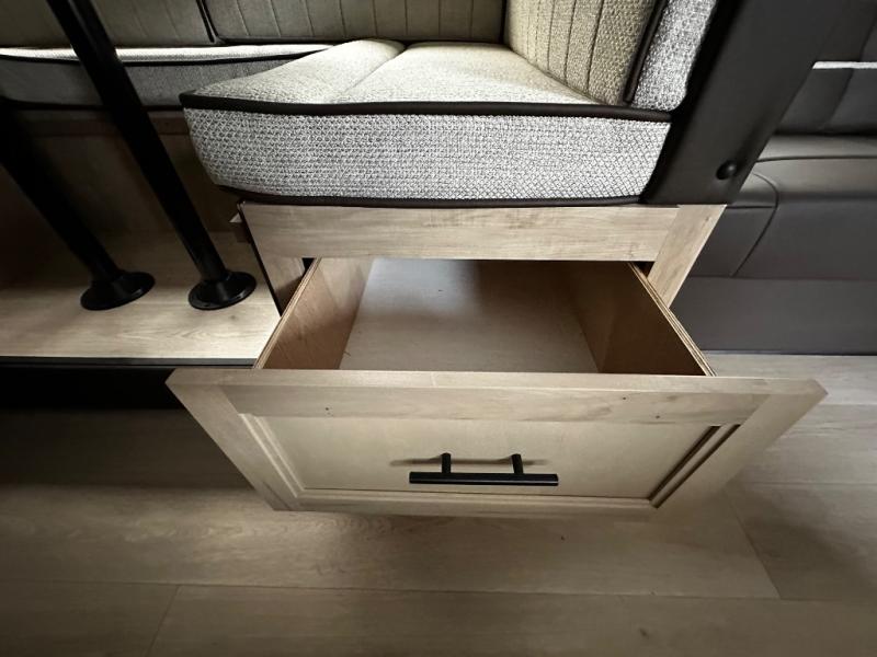 What I liked most: Entertainment center has plenty of storage as well as good looks. The booth is raised and has drawers that are raised as well. The closet for storage feels like it could hold a lot, this adds an immense amount of storage possibilities. You won't be disappointed with the wood quality.
