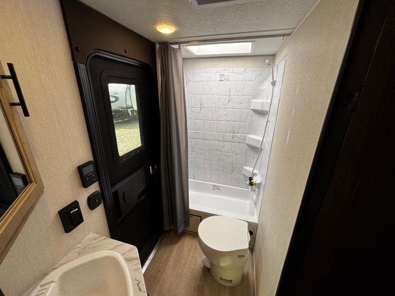 Whether it's a journey that will take you to new locations or a tried-and-true getaway to that favorite and memorable destination, the Forest River Cherokee Grey Wolf travel trailers and toy haulers are going to make the trip worth it every single time! You can travel in confidence with the premium wheel package, seamless roofing membrane with heat reflectivity, Power Gear frame technology with space-saver rail design, and Cherokee back-up camera system. The Cherokee Grey Wolf's interior is highly attractive with its stainless steel kitchen suite package and premium bedding ensemble and comforter. You will also find a black waste tank flush-out kit, an outside shower with hot and cold water, an armored underbelly tank enclosure, and an RV grill quick connect.