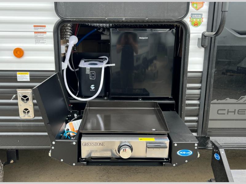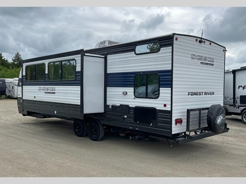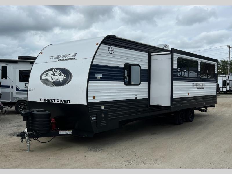 Whether it's a journey that will take you to new locations or a tried-and-true getaway to that favorite and memorable destination, the Forest River Cherokee Grey Wolf travel trailers and toy haulers are going to make the trip worth it every single time! You can travel in confidence with the premium wheel package, seamless roofing membrane with heat reflectivity, Power Gear frame technology with space-saver rail design, and Cherokee back-up camera system. The Cherokee Grey Wolf's interior is highly attractive with its stainless steel kitchen suite package and premium bedding ensemble and comforter. You will also find a black waste tank flush-out kit, an outside shower with hot and cold water, an armored underbelly tank enclosure, and an RV grill quick connect.