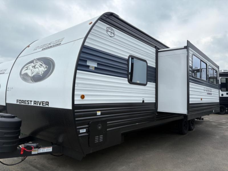Whether it's a journey that will take you to new locations or a tried-and-true getaway to that favorite and memorable destination, the Forest River Cherokee Grey Wolf travel trailers and toy haulers are going to make the trip worth it every single time! You can travel in confidence with the premium wheel package, seamless roofing membrane with heat reflectivity, Power Gear frame technology with space-saver rail design, and Cherokee back-up camera system. The Cherokee Grey Wolf's interior is highly attractive with its stainless steel kitchen suite package and premium bedding ensemble and comforter. You will also find a black waste tank flush-out kit, an outside shower with hot and cold water, an armored underbelly tank enclosure, and an RV grill quick connect.