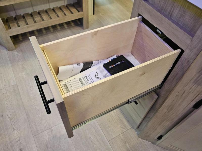 What I liked most: Entertainment center has plenty of storage as well as good looks. The booth is raised and has drawers that are raised as well. The closet for storage feels like it could hold a lot, this adds an immense amount of storage possibilities. You won't be disappointed with the wood quality.