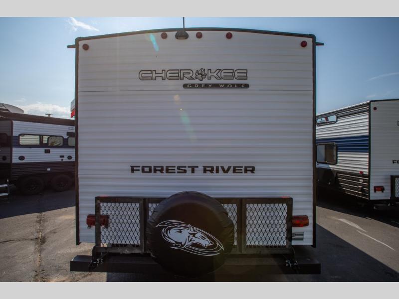 Whether it's a journey that will take you to new locations or a tried-and-true getaway to that favorite and memorable destination, the Forest River Cherokee Grey Wolf travel trailers and toy haulers are going to make the trip worth it every single time! You can travel in confidence with the premium wheel package, seamless roofing membrane with heat reflectivity, Power Gear frame technology with space-saver rail design, and Cherokee back-up camera system. The Cherokee Grey Wolf's interior is highly attractive with its stainless steel kitchen suite package and premium bedding ensemble and comforter. You will also find a black waste tank flush-out kit, an outside shower with hot and cold water, an armored underbelly tank enclosure, and an RV grill quick connect.