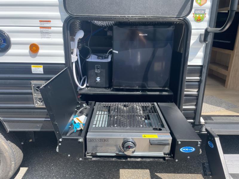 Whether it's a journey that will take you to new locations or a tried-and-true getaway to that favorite and memorable destination, the Forest River Cherokee Grey Wolf travel trailers and toy haulers are going to make the trip worth it every single time! You can travel in confidence with the premium wheel package, seamless roofing membrane with heat reflectivity, Power Gear frame technology with space-saver rail design, and Cherokee back-up camera system. The Cherokee Grey Wolf's interior is highly attractive with its stainless steel kitchen suite package and premium bedding ensemble and comforter. You will also find a black waste tank flush-out kit, an outside shower with hot and cold water, an armored underbelly tank enclosure, and an RV grill quick connect.