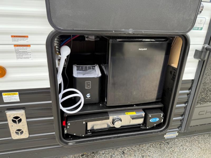 Whether it's a journey that will take you to new locations or a tried-and-true getaway to that favorite and memorable destination, the Forest River Cherokee Grey Wolf travel trailers and toy haulers are going to make the trip worth it every single time! You can travel in confidence with the premium wheel package, seamless roofing membrane with heat reflectivity, Power Gear frame technology with space-saver rail design, and Cherokee back-up camera system. The Cherokee Grey Wolf's interior is highly attractive with its stainless steel kitchen suite package and premium bedding ensemble and comforter. You will also find a black waste tank flush-out kit, an outside shower with hot and cold water, an armored underbelly tank enclosure, and an RV grill quick connect.