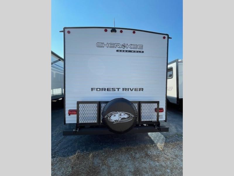 Whether it's a journey that will take you to new locations or a tried-and-true getaway to that favorite and memorable destination, the Forest River Cherokee Grey Wolf travel trailers and toy haulers are going to make the trip worth it every single time! You can travel in confidence with the premium wheel package, seamless roofing membrane with heat reflectivity, Power Gear frame technology with space-saver rail design, and Cherokee back-up camera system. The Cherokee Grey Wolf's interior is highly attractive with its stainless steel kitchen suite package and premium bedding ensemble and comforter. You will also find a black waste tank flush-out kit, an outside shower with hot and cold water, an armored underbelly tank enclosure, and an RV grill quick connect.