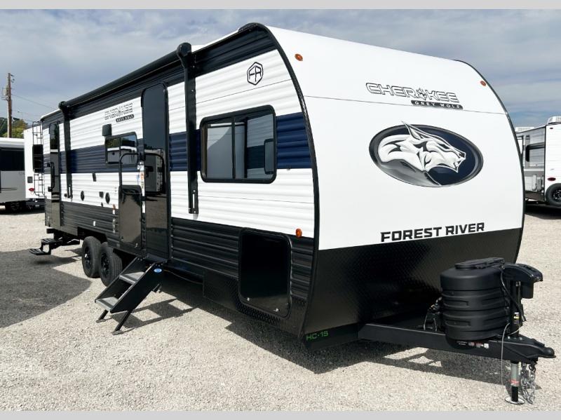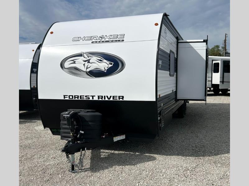 The Cherokee Grey Wolf by Forest River feature distinctive features, at-home comforts, and durable construction materials so you can enjoy your RV for years to come, plus they are outstandingly affordable! You can choose between travel trailers, toy haulers, and even fish houses, depending on the camping style you prefer. You'll find many convenient amenities both inside and outside, along with comfortable seating and sleeping spaces, and plenty of storage for your personal belongings and camp gear!
