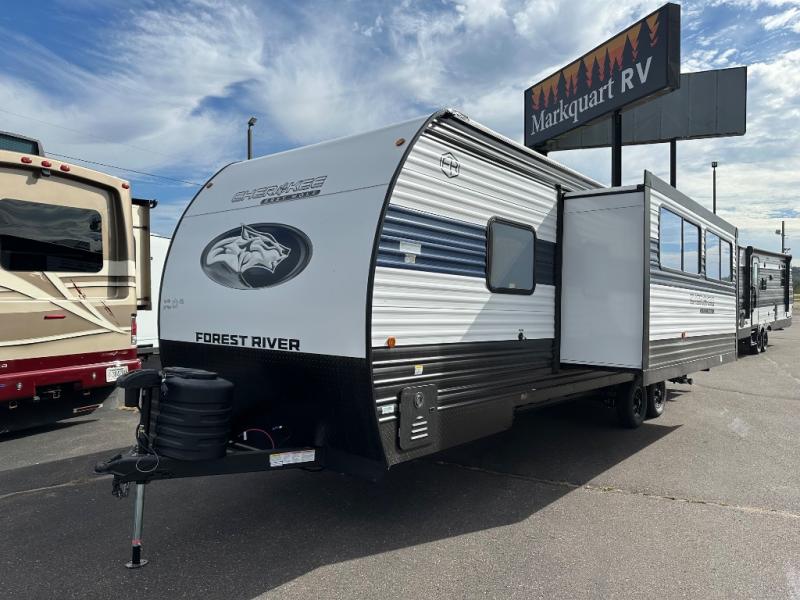 The Cherokee Grey Wolf by Forest River feature distinctive features, at-home comforts, and durable construction materials so you can enjoy your RV for years to come, plus they are outstandingly affordable! You can choose between travel trailers, toy haulers, and even fish houses, depending on the camping style you prefer. You'll find many convenient amenities both inside and outside, along with comfortable seating and sleeping spaces, and plenty of storage for your personal belongings and camp gear!