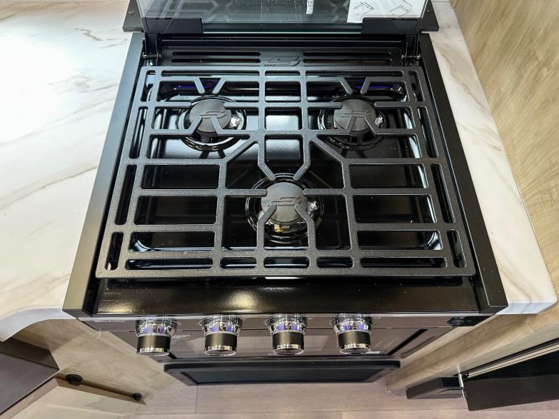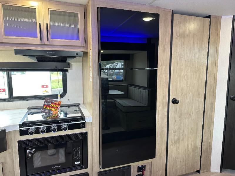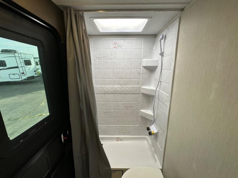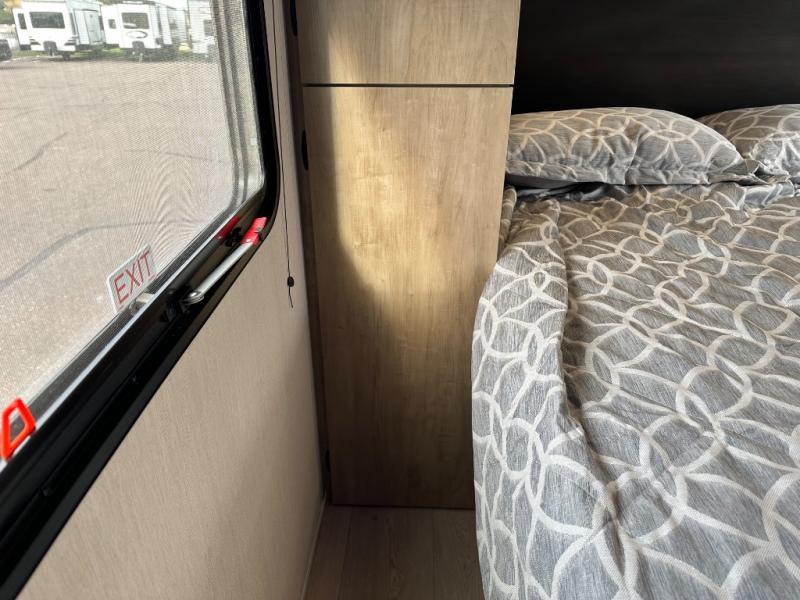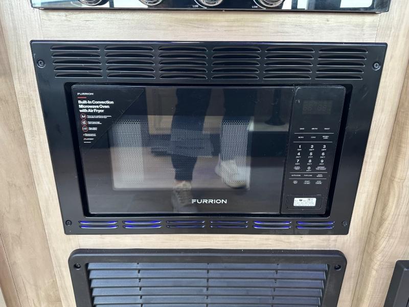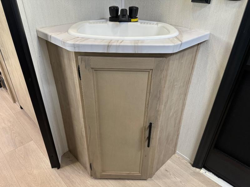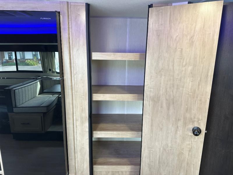 Come on inside this Cherokee Grey Wolf travel trailer and experience the convenience of a smooth flow of traffic in and out with two entry doors. The rear door leads into a full bath which is great for accessibility. Once inside, you will notice the large U-shaped dinette and the sofa which sit on the slide and create a spacious footprint for moving about, as well as great places to play games and socialize with your friends and family. A walk-in pantry provides plenty of storage allowing you to stock up on your favorite snacks and dry goods for your family adventure. At night, there is sleeping space for everyone between the double-size bunks and the RV king bed, plus the furniture.